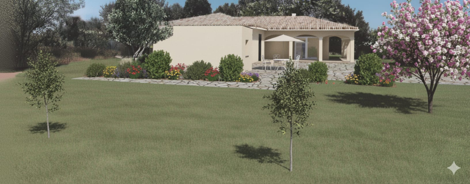 Un garage double couvert par un toit terrasse viendra completer l'habitation ( il sera relié a la maison par une pergola.)