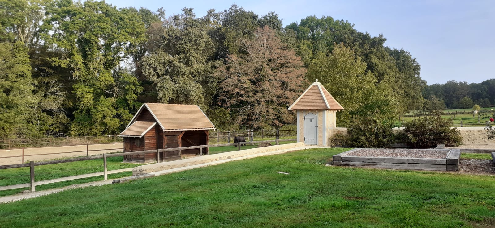 Côté équestre, la propriété offre sur près de 10 hectares : 1 manège, 2 carrières, 28 boxes, 1 rond de longe, des hangars, 28 paddocks avec abris et une entrée directe sur la forêt.