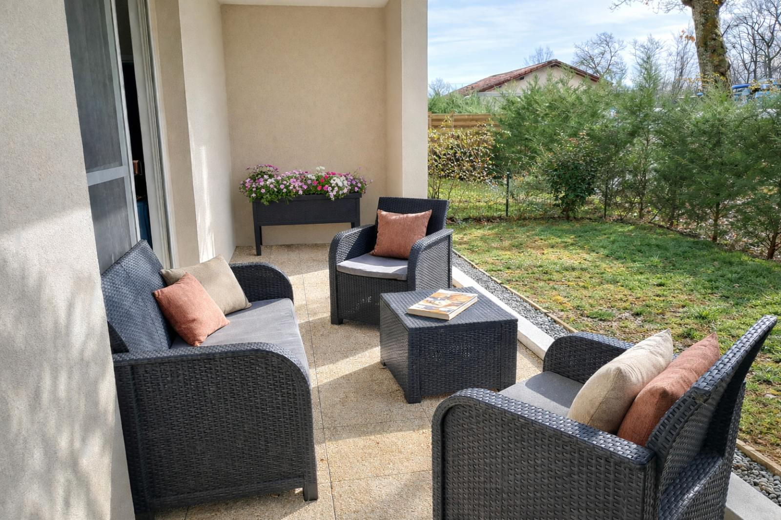 Dans un environnement recherché, au calme d'une impasse et à proximité du lac de Christus, découvrez cet appartement récent ( 2023 ) situé au rez-de-chaussée d'une résidence à l'architecture chaleureuse, et aux tosn naturels.
