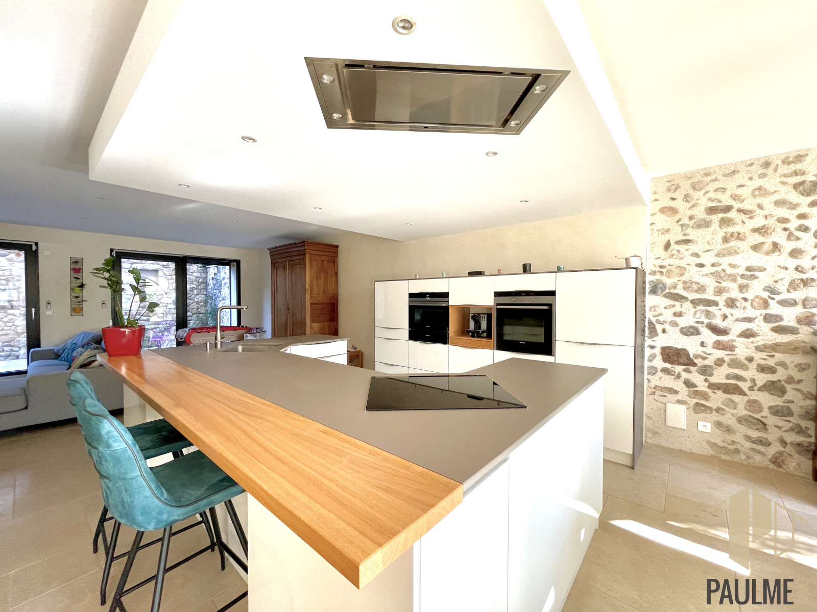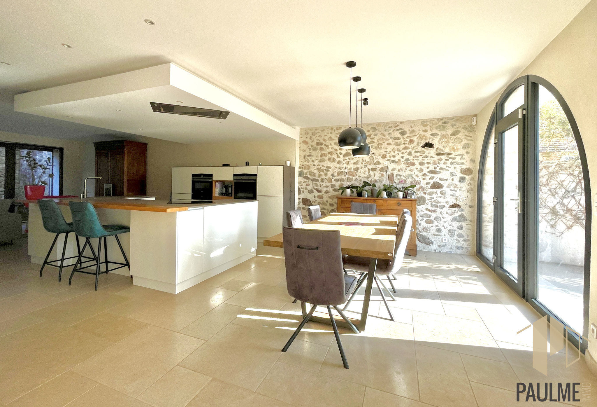 Prestations : dalles béton entre les niveaux, pierres et poutres apparentes, excellente isolation, chaux chanvre sur certains murs, pierres d'Egype de 2cm au sol, VMC double flux, parquet chêne, chauffage gaz de ville au sol au RDC, radiateurs à l'étage, aspiration centralisée.