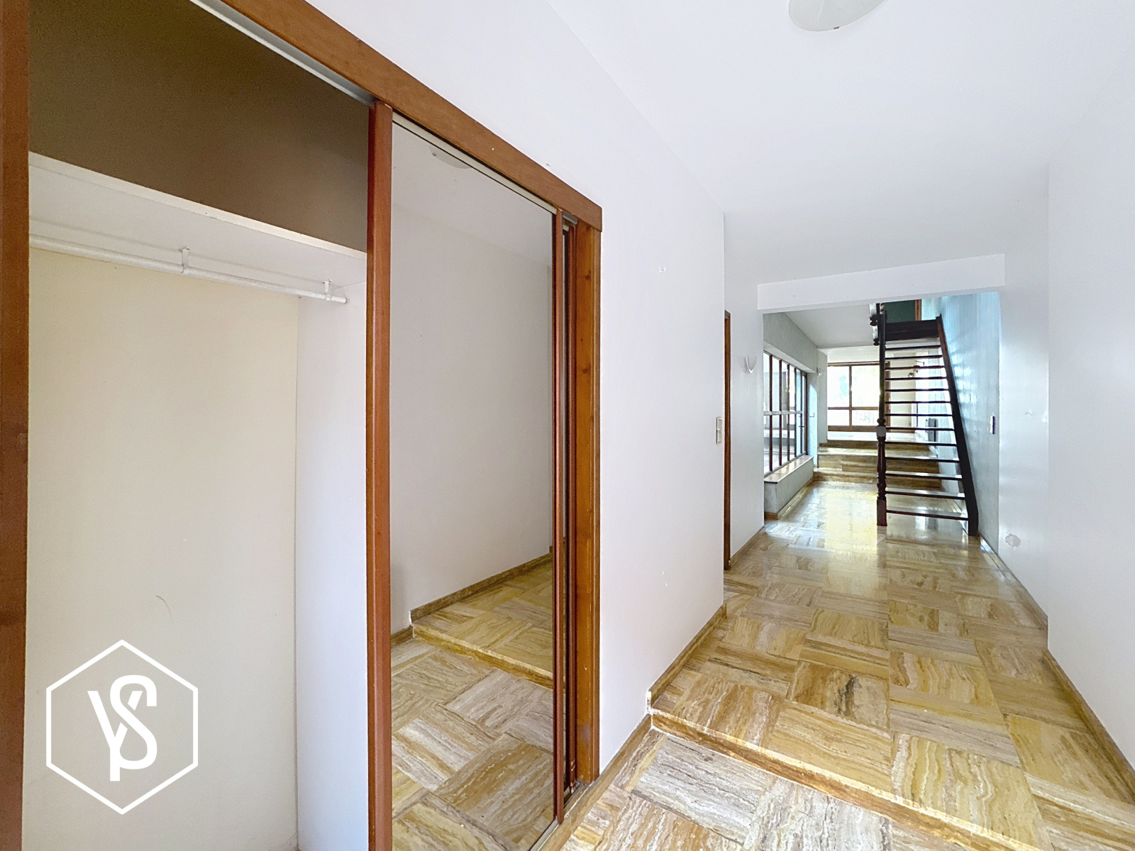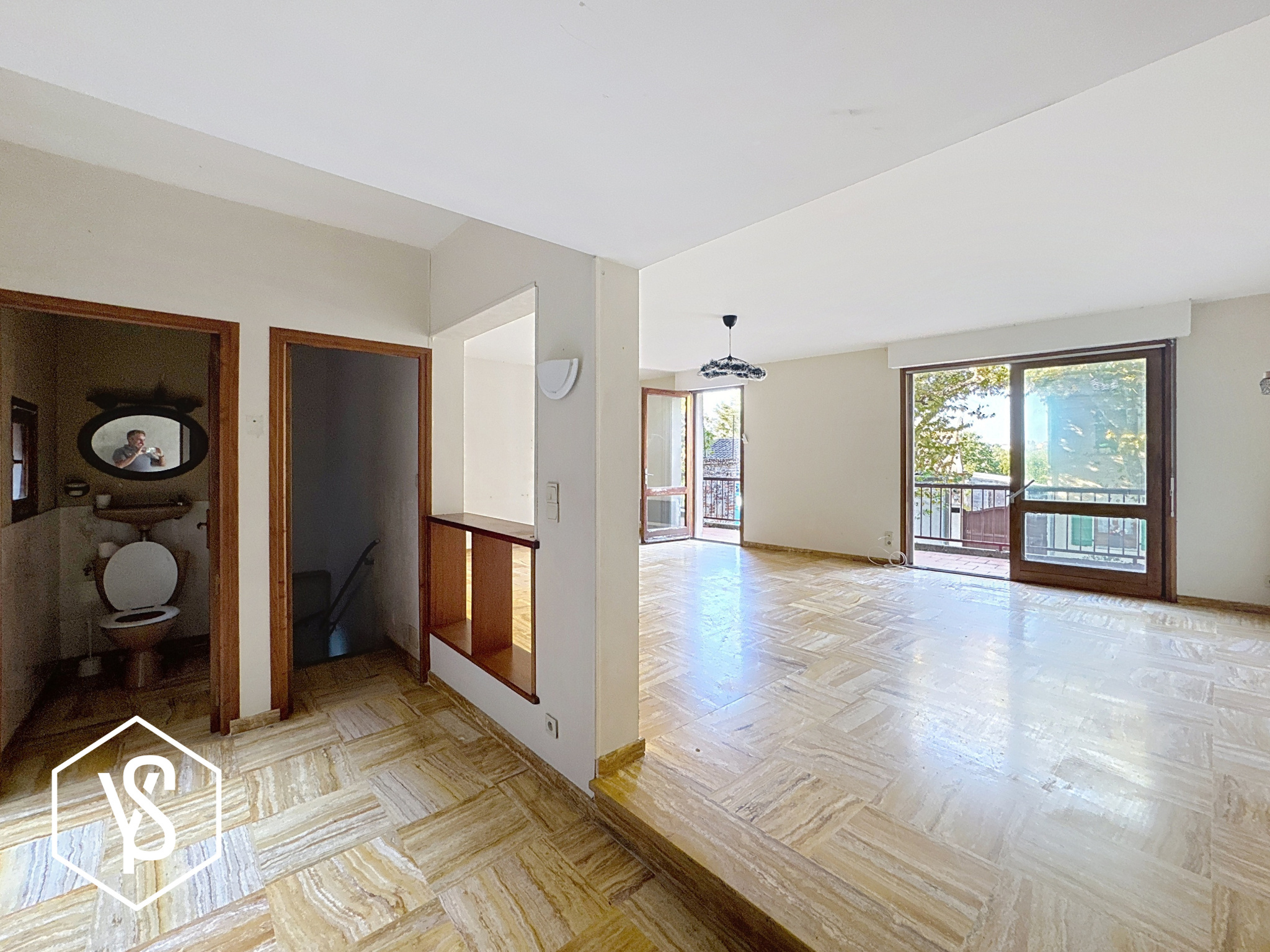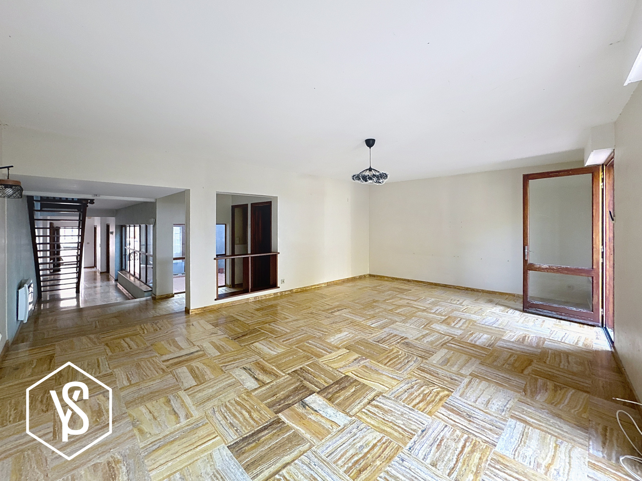 Au rez-de-chaussée : hall d'entrée et dégagement spacieux qui dévoilent une grande cuisine à vivre de 24m² ouverte sur le patio, séjour de 32m² ouvrant sur une terrasse filante parfaitement orientée Sud-Ouest, WC séparé et accès vers le garage en s/sol qui répond au besoin de rangement.