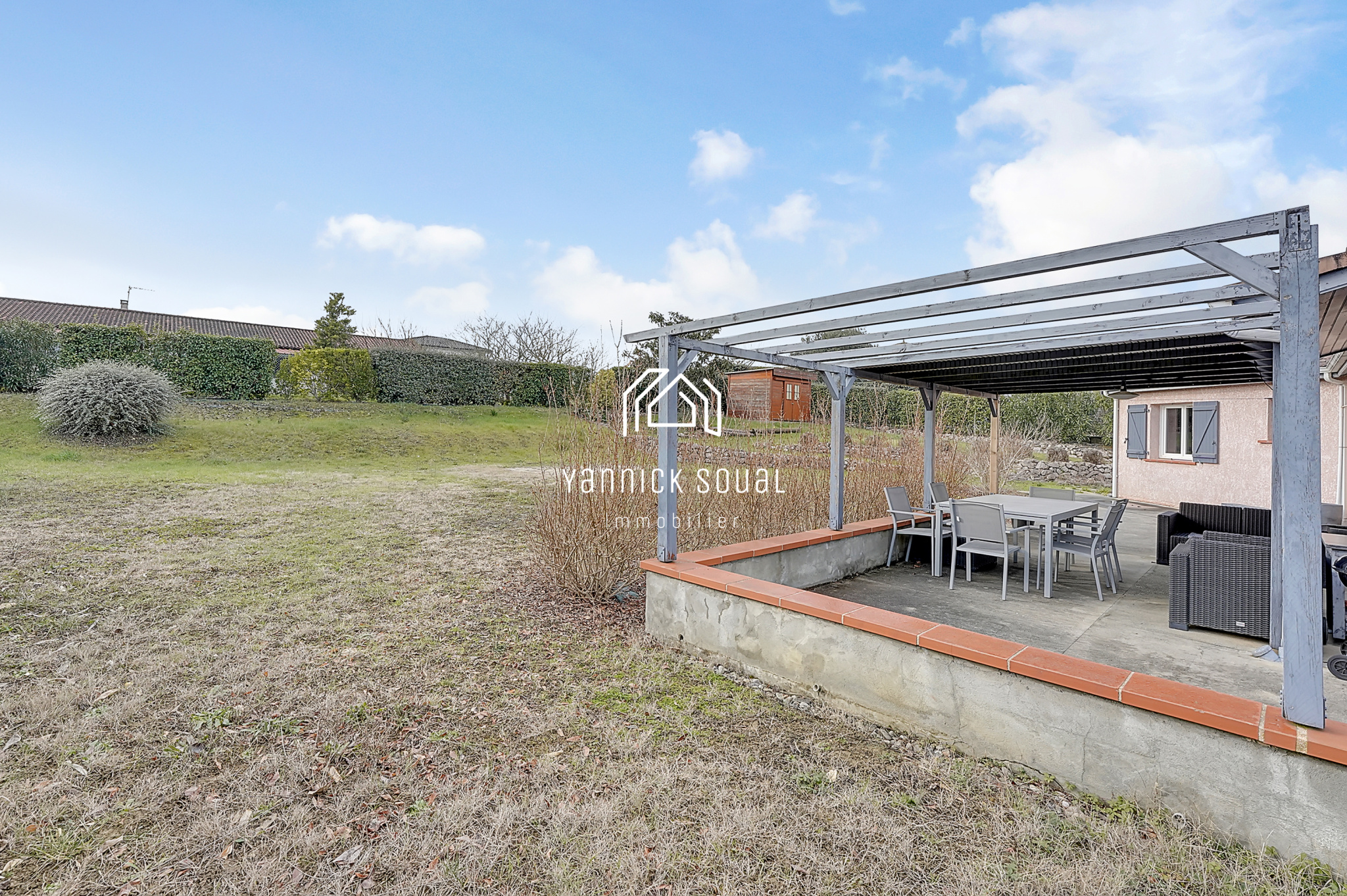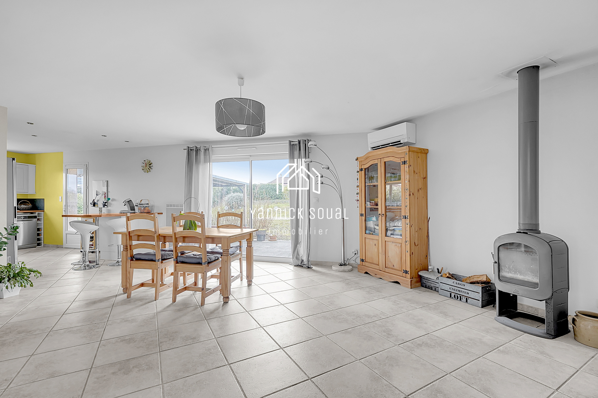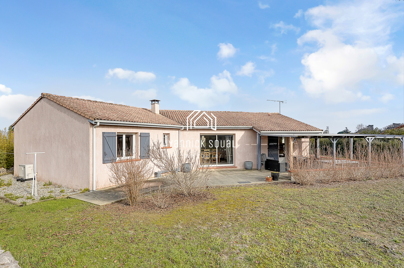 "COCAGNE" - En EXCLUSIVITE : Au calme, à 2 pas des commodités PAVILLON T4 plain pied de 105m² sur un terrain clos de 1.200m² parfaitement entretenu, sans nuisances. Pièce de vie cuisine ouverte de 55m², 3 chambres avec placards, salle de bains complète, bunderie et garage. Terrasse de 80m² orientée Sud-Ouest, poële bois, climatisation réversible. Ecoles primaires et Collège à pieds, transports pour Lycée St-Orens. Cette jolie maison est idéale pour un premier achat.