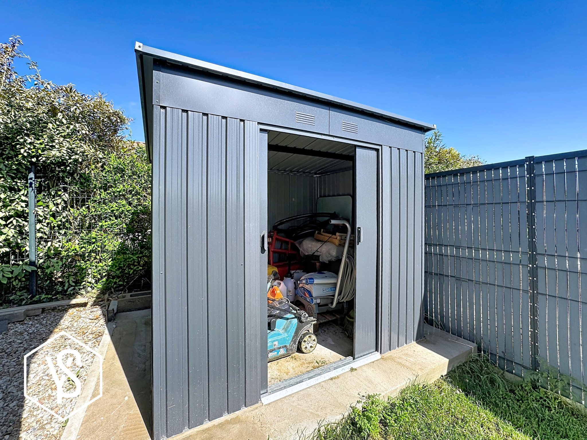 Terrain clos et sécurisé par portail motorisé.