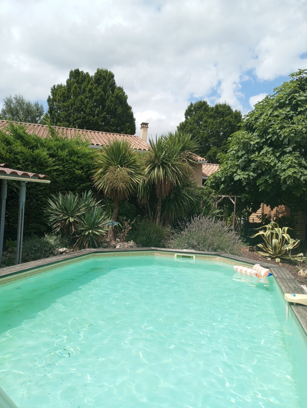 Coté extérieur, magnifique jardin entièrement clôturé sans vis à vis, arboré avec de nombreuse plantes exotiques, une grande terrasse avec cuisine d'été équipé, piscine semi enterrée avec sa grande plage, il y a aussi une dépendance pouvant être aménagé.