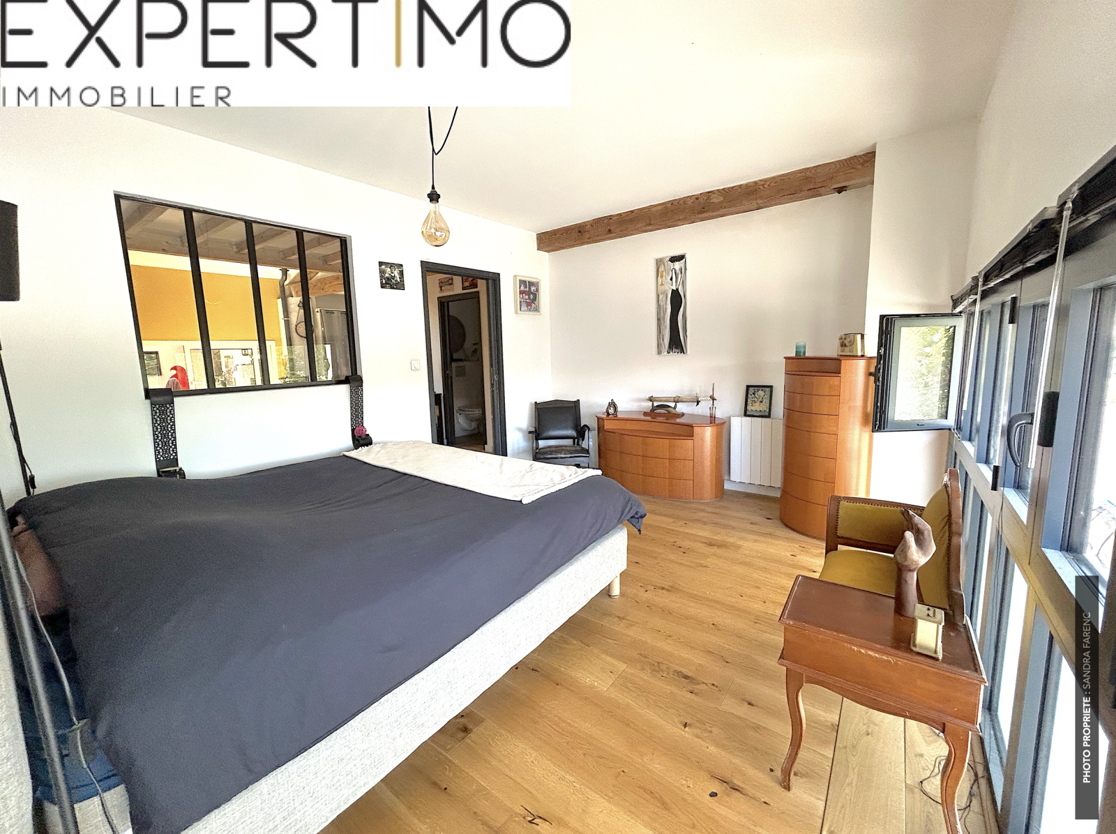 Au 2ème niveau, vous découvrirez une superbe pièce à vivre type loft de plus de 100m2 dotée d'une cuisine moderne ouverte et tout équipée, d'une grande chambre lumineuse avec dressing de 20m2, d'une deuxième chambre de 13m2, d'une mezzanine de 25m2 accessible par un escalier escamotable, d'une grande salle d'eau avec double vasque et douche à l'Italienne et d'un WC suspendu indépendant avec lave-main.