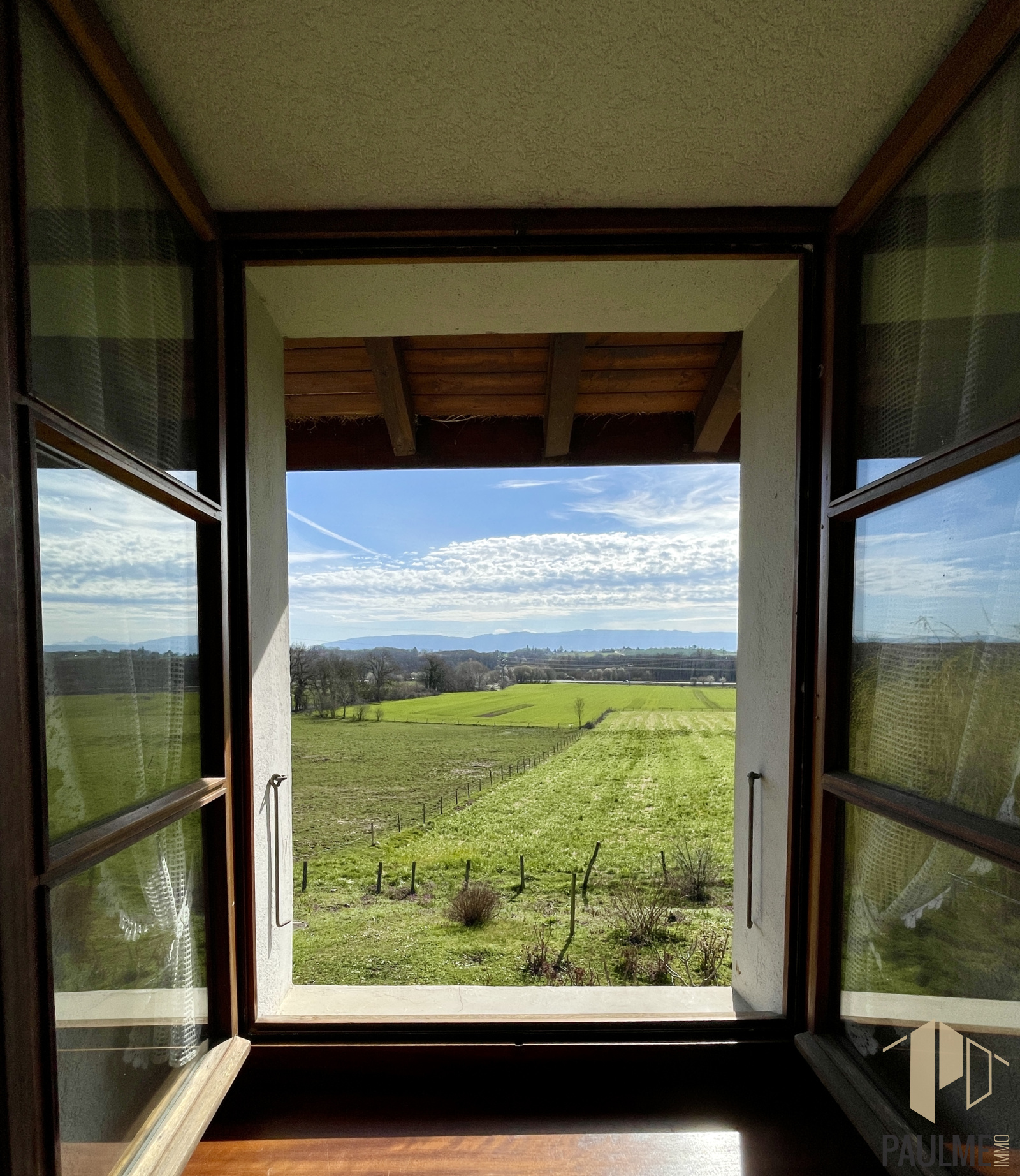 Pierres et poutres apparentes, beaucoup de charme dans un environnement EXCEPTIONNEL, CALME ET SANS VIS A VIS. A 2kms de Challex et 5 kms de la Plaine (SUISSE).