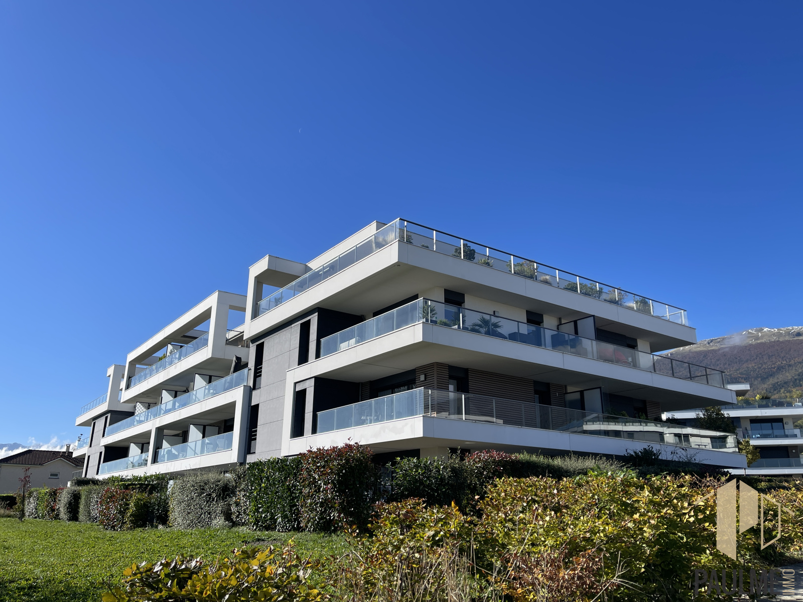 Vendu avec deux places de stationnement en sous-sol et une cave, cet appartement dispose de deux magnifiques terrasses avec vue Alpes et Jura dégagée qui totalisent 70 m2 d'extérieur.