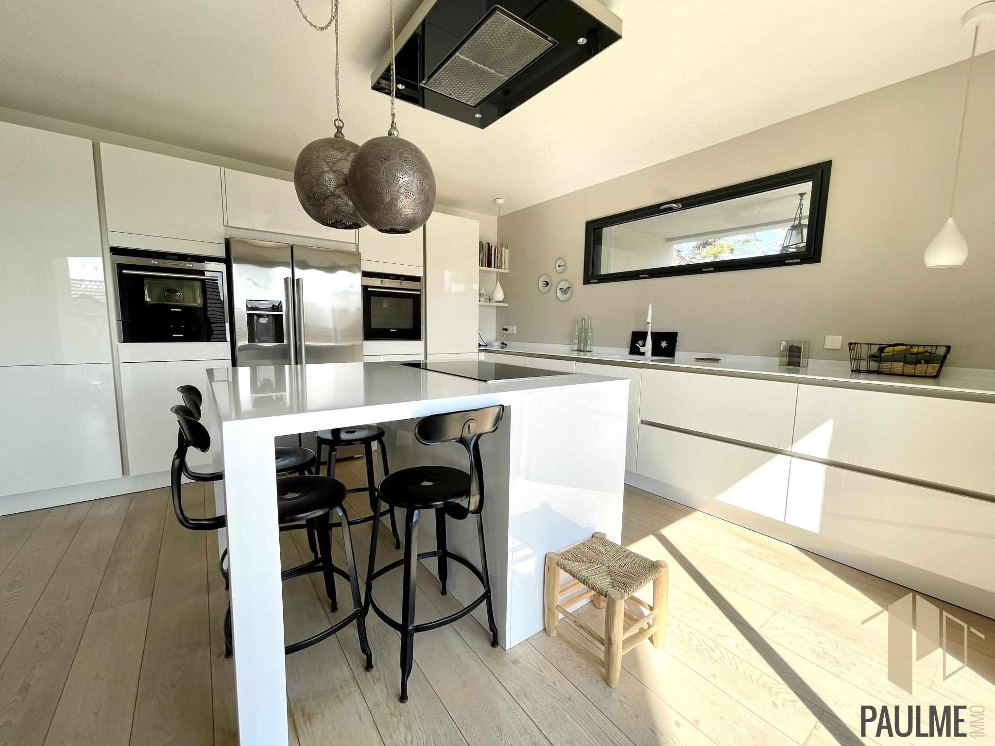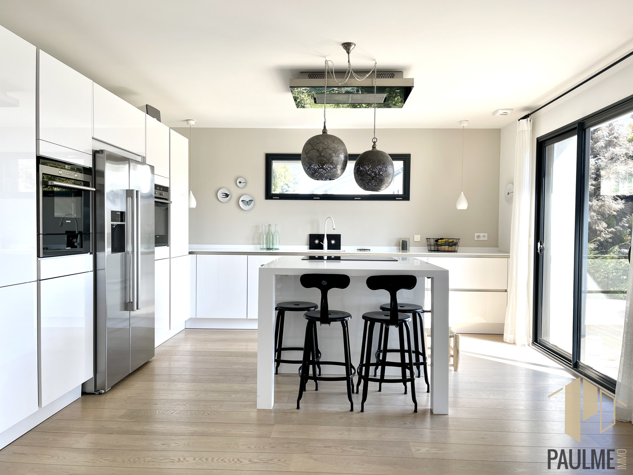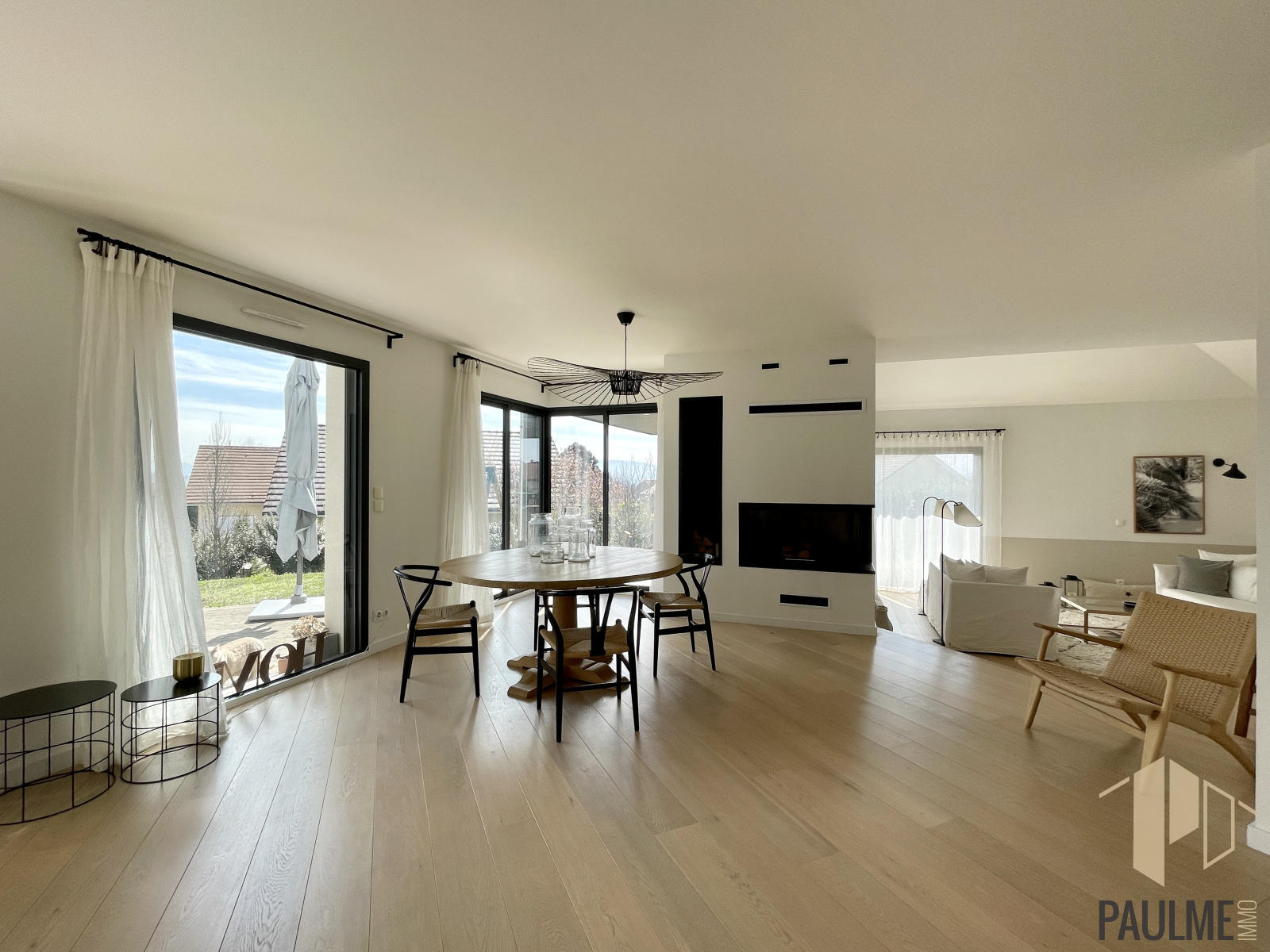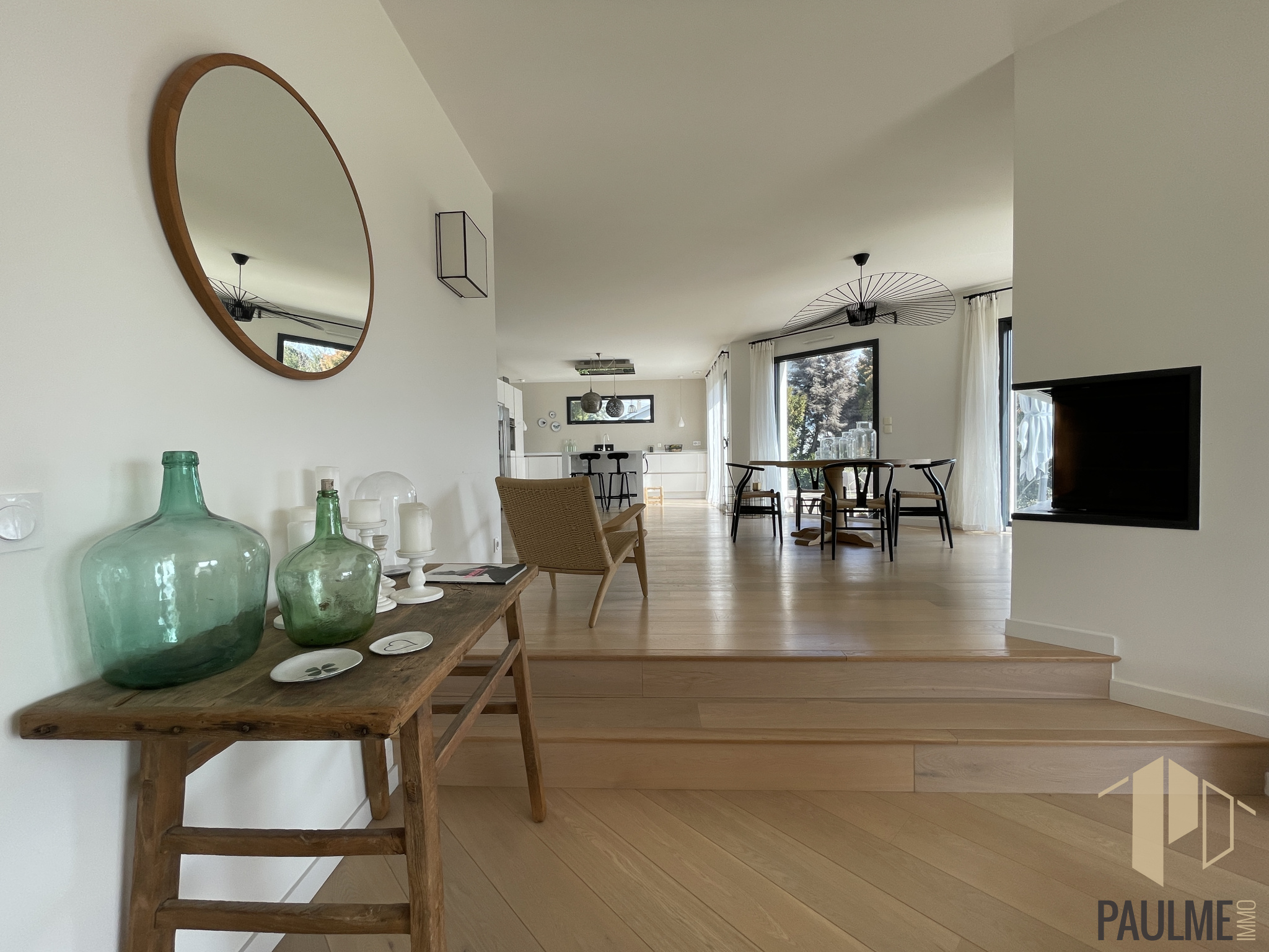D’une superficie habitable de 210 m² (294 m² utiles) bâtie en 2014 sur un terrain de 1025 m² entièrement clos et arboré. Composée d’une pièce de vie de 67 m² avec cuisine Siematic équipée dotée d’un îlot central, ouverte sur la salle-à -manger et le salon cathédrale avec cheminée d'angle et accès terrasse. Les portes fenêtres à galandage permettent une ouverture maximale vers le salon d'extérieur. Espace bureau semi-ouvert sur le séjour.