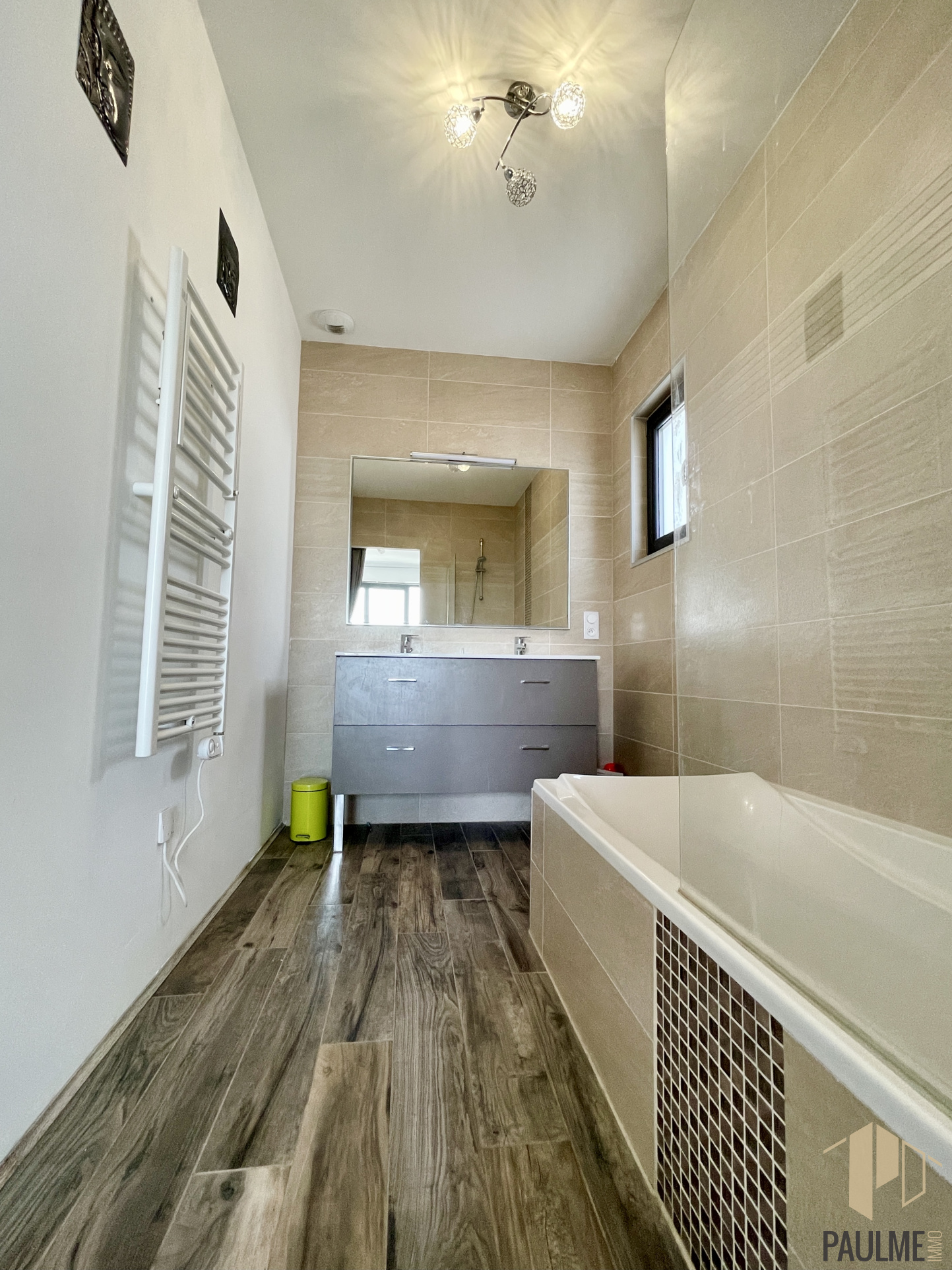 Construite en 2016 sur un terrain de 444 m2, elle offre : une entrée avec placard mural, une chambre avec placard et douche privative, un vaste et lumineux séjour de 41,50 m2 donnant sur la terrasse de plus de 50 m2 avec jardin, une cuisine entièrement équipée, un garage de 26 m2.