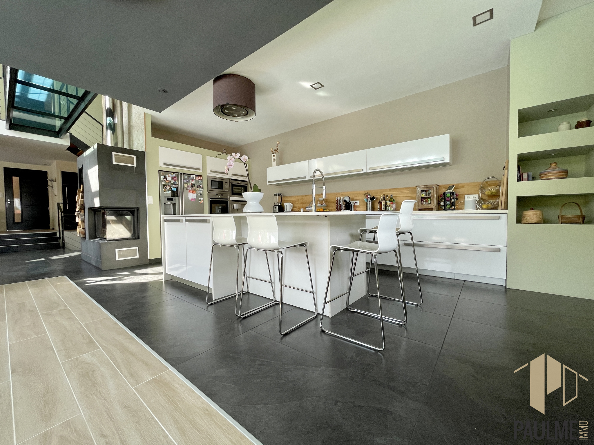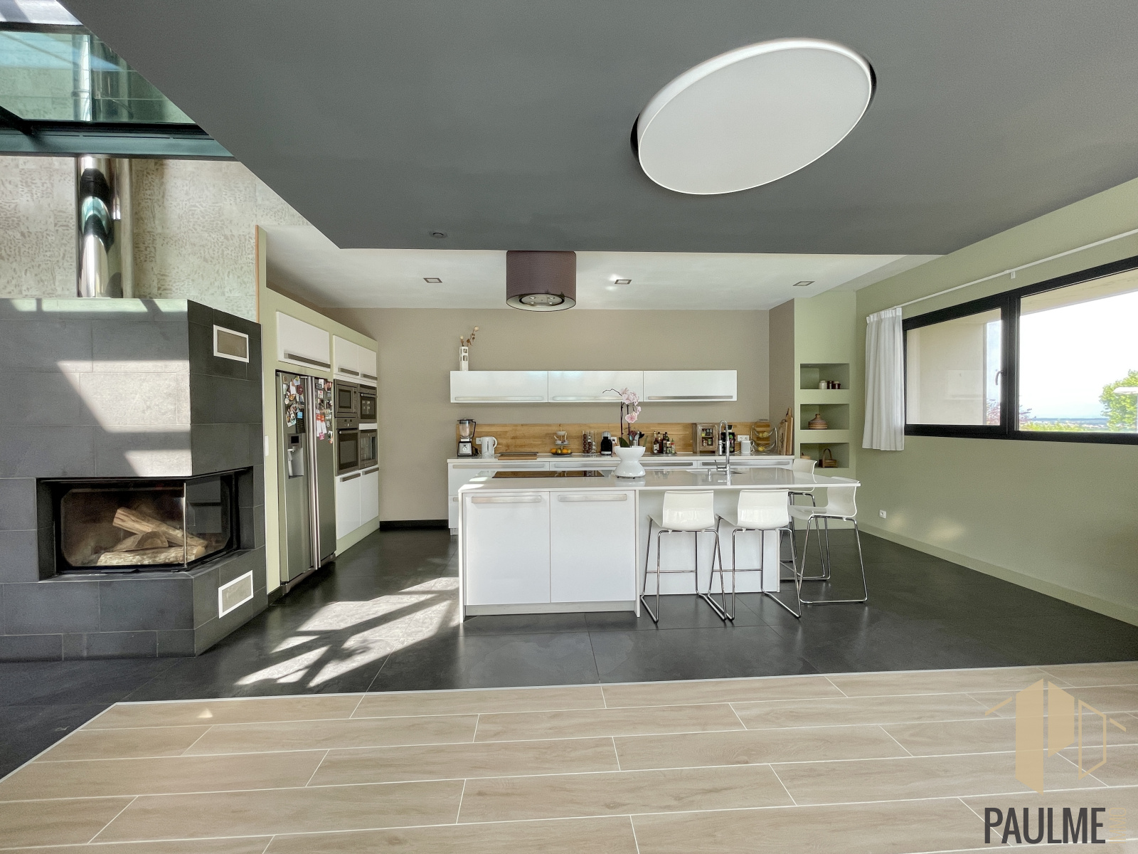D'une surface de 233 m2 (+ 66 m2 non habitables), elle se compose comme suit : une entrée, une cuisine entièrement équipée ouverte sur une pièce de vie baignée de lumière avec cheminée design, un salon TV avec poêle à bois, un cellier, une buanderie, 3 belles chambres dont une suite parentale avec dressing et salle de bains, une salle de douche, 4 toilettes.