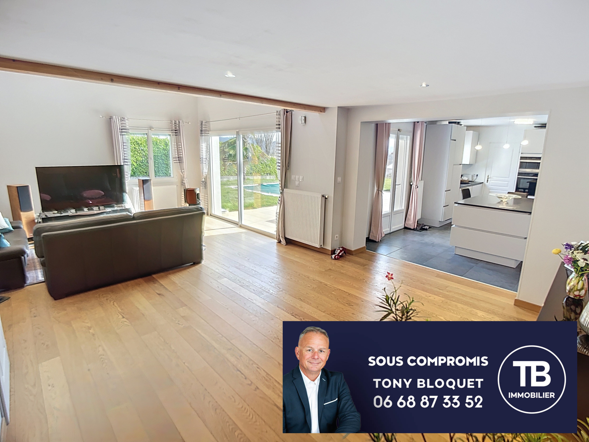Magnifique maison à vendre de 151 m² environ sur l'Isle d'Abeau (38080), sur le secteur très convoité de Pierre-Louve. De très beaux volumes, baignés de lumières vous attendent dans cette maison de 4 chambres, dont une suite parentale de plain-pied (avec sa salle de douche). Au rez de chaussée : grande cuisine équipée, grand séjour cathédrale avec mezzanine et sa belle ouverture donnant sur la terrasse (équipée d'un store) et la piscine, la suite parentale, wc et garage. A l'étage : un dégagement desservant 3 chambres, salle de bains et wc. Terrain clos de 782m². Piscine au sel 4X4 mètres, chauffée et sécurisée. Grande cave.