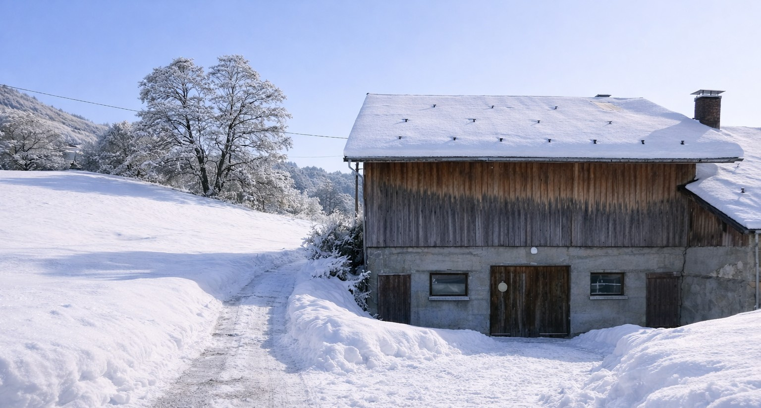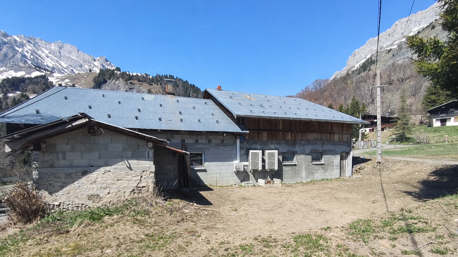 Attenante au chalet, une vaste grange construite dans les années 70 ouvre des perspectives d'agrandissement mulitiples .