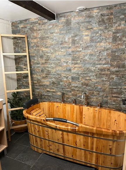 Avec baignoire en bois