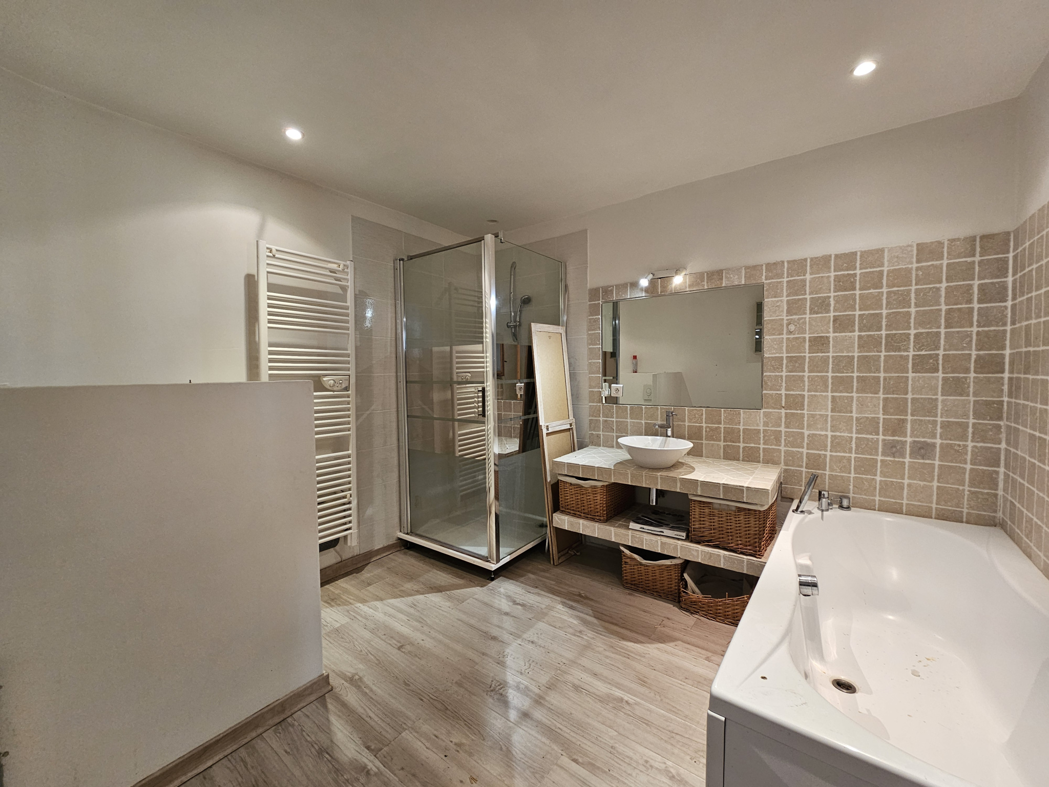 Au premier étage, un appartement de 60 m² est à rénover entièrement, avec la possibilité de le diviser.