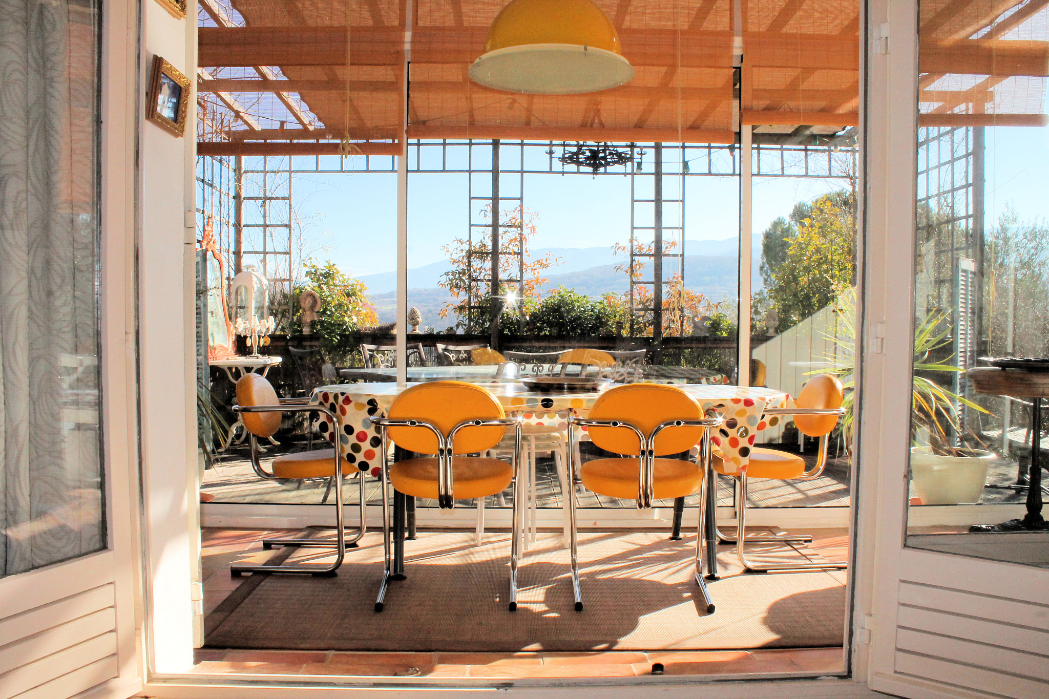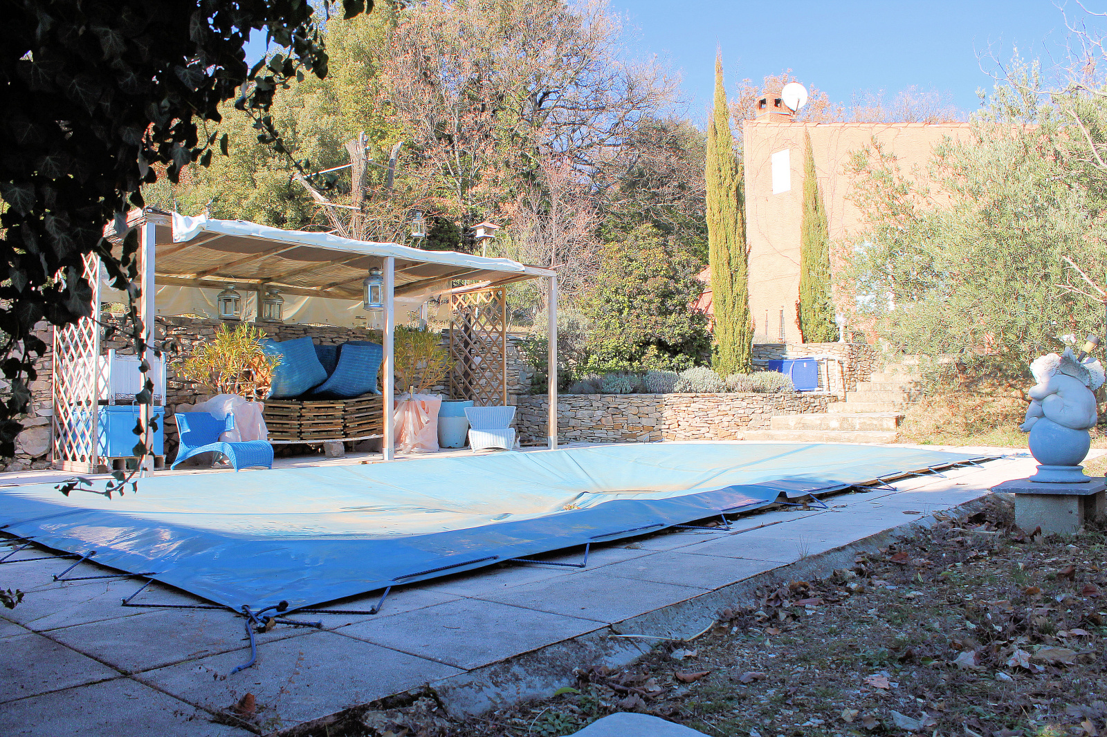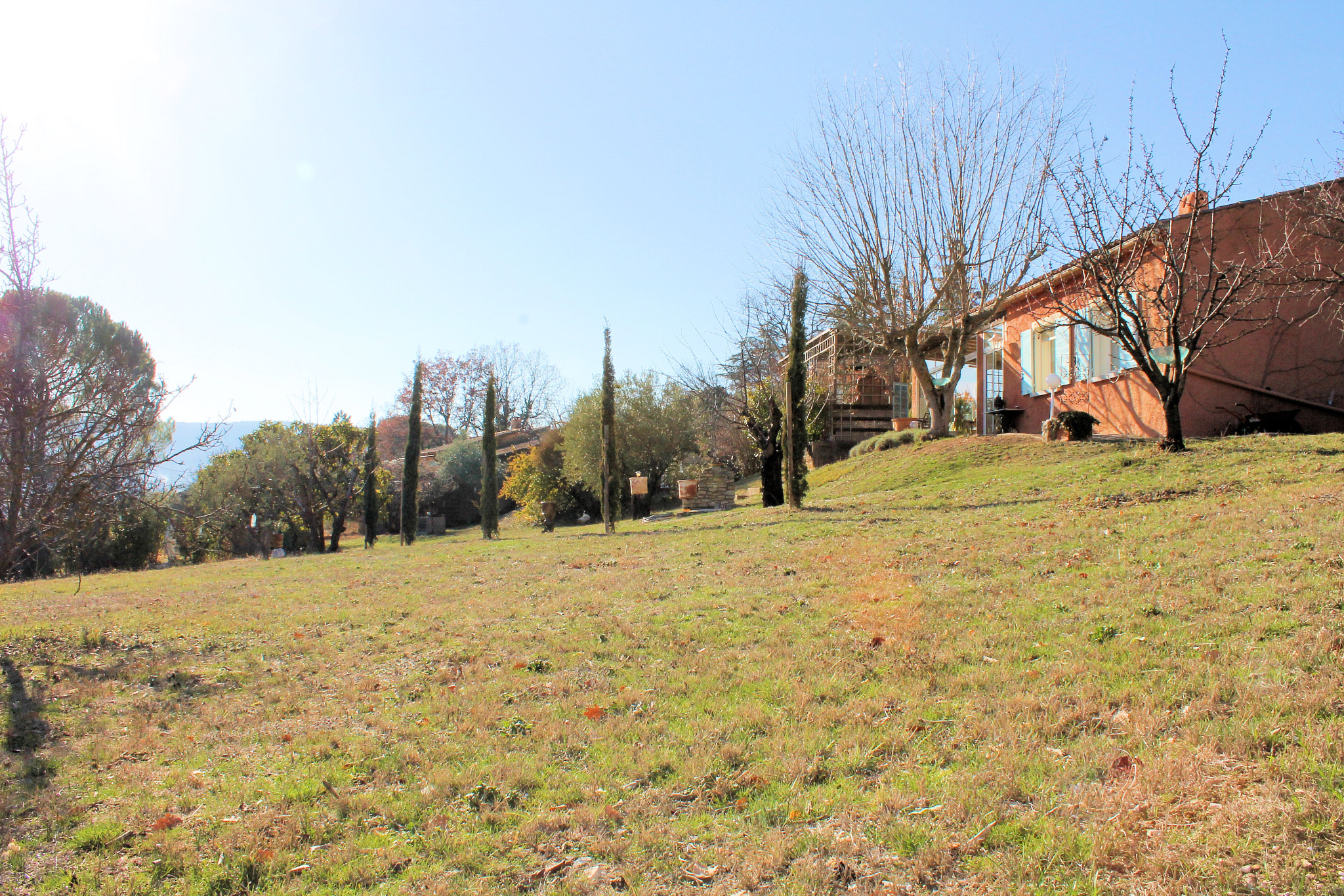 Le terrain de 2475m2 est agrémenté d'arbres fruitiers, d'une piscine, d'une terrasse de 25m2, d'un joli chalet de 20m2, d'une cuisine d'été et d'un abri voiture.