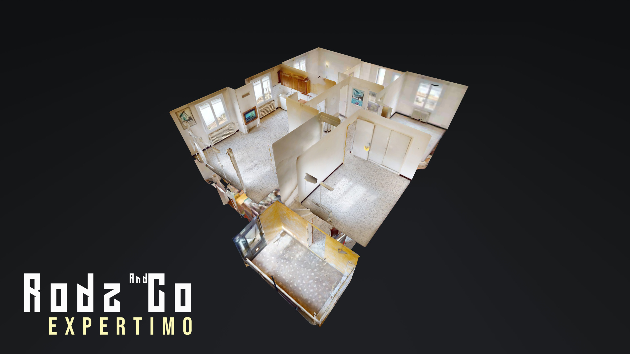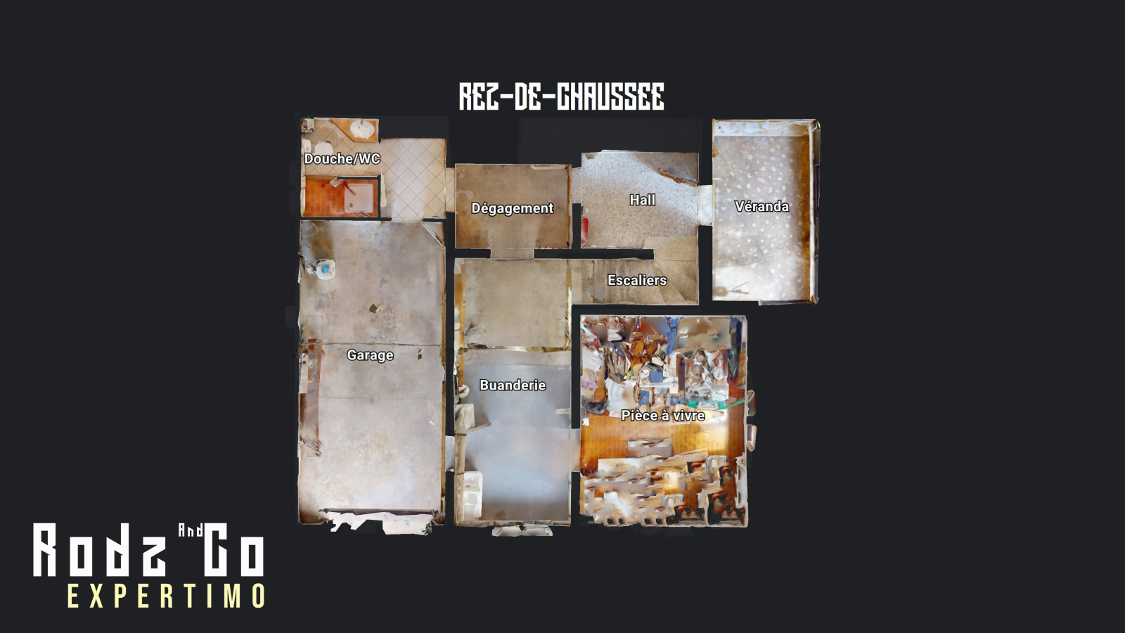 Le logement propose deux niveaux d'environ 80m2 chacun. On pénètre au rez-de-chaussée intérieur au choix soit par le garage et son atelier-buanderie depuis la rue, soit par une véranda depuis le jardin desservant un hall d'entrée sur escaliers et atelier-buanderie, soit par une pièce-à-vivre donnant sur le jardin et desservant l'atelier-buanderie.