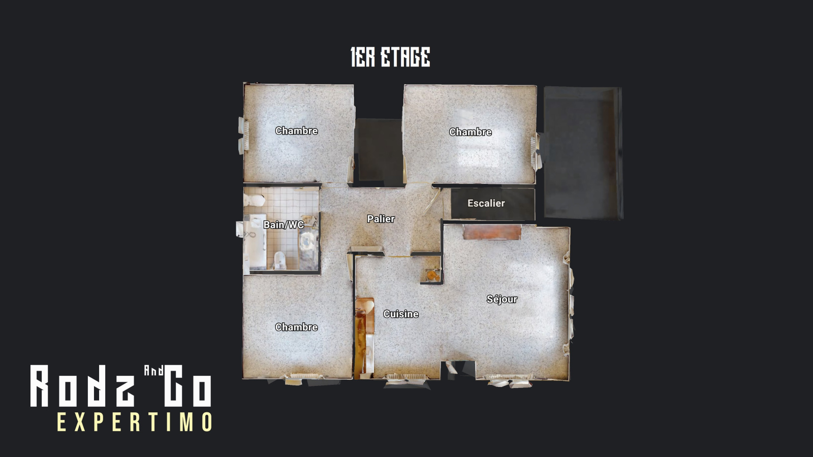 L'escalier du hall amène à un palier central au premier étage desservant trois chambres, une salle de bains avec WC, ainsi qu'un salon/séjour-cuisine-salle à manger (avec une cheminée-insert) donnant lui-même sur un balcon-terrasse offrant une vue dominante sur la ville et ses environs.