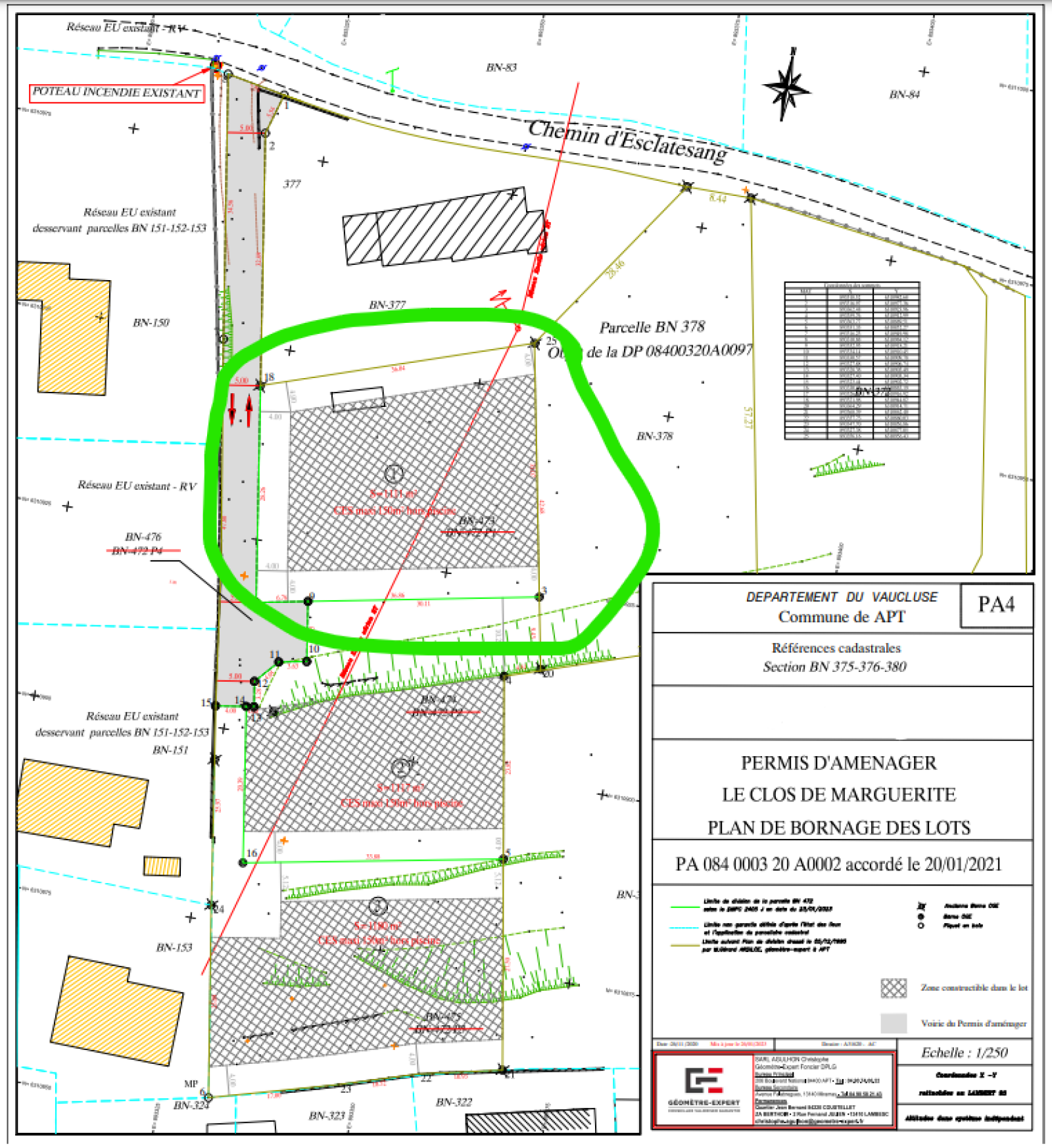 Le terrain est viabilisé, borné, CES maxi 150m2 hors piscine.