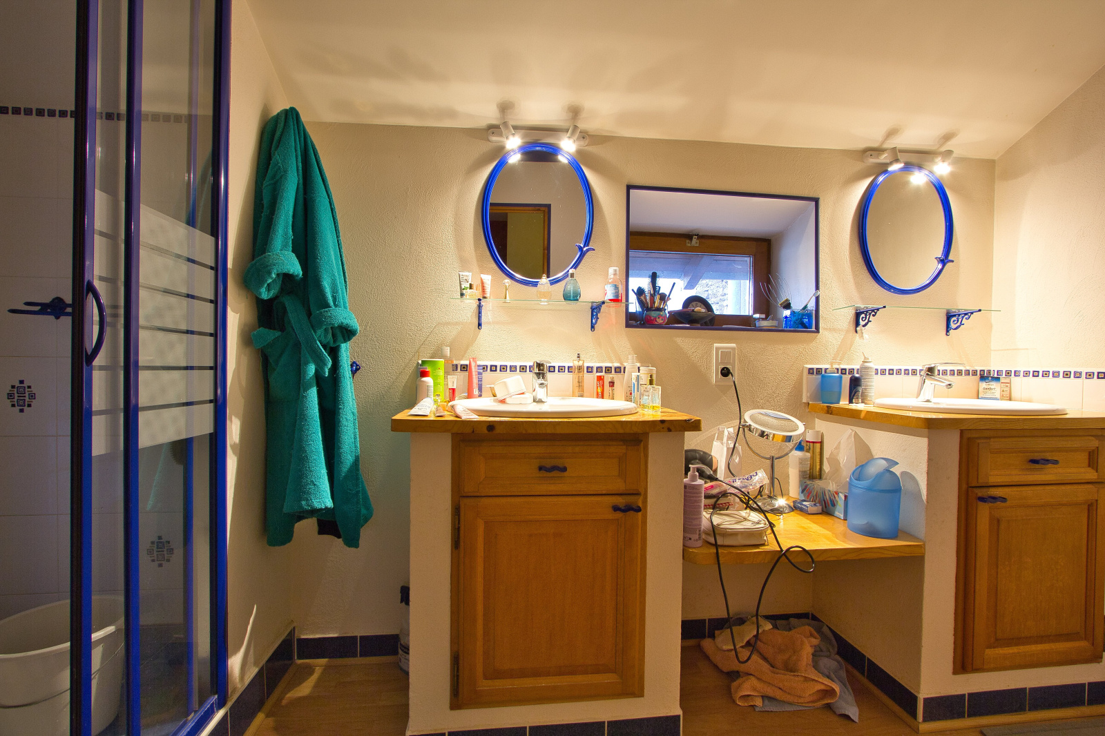 Elle se compose à l'étage: D'une grande cuisine toute équipée et salle à manger, un salon, deux chambres une salle de douche et un WC séparé.