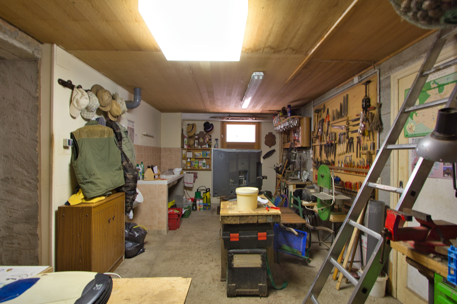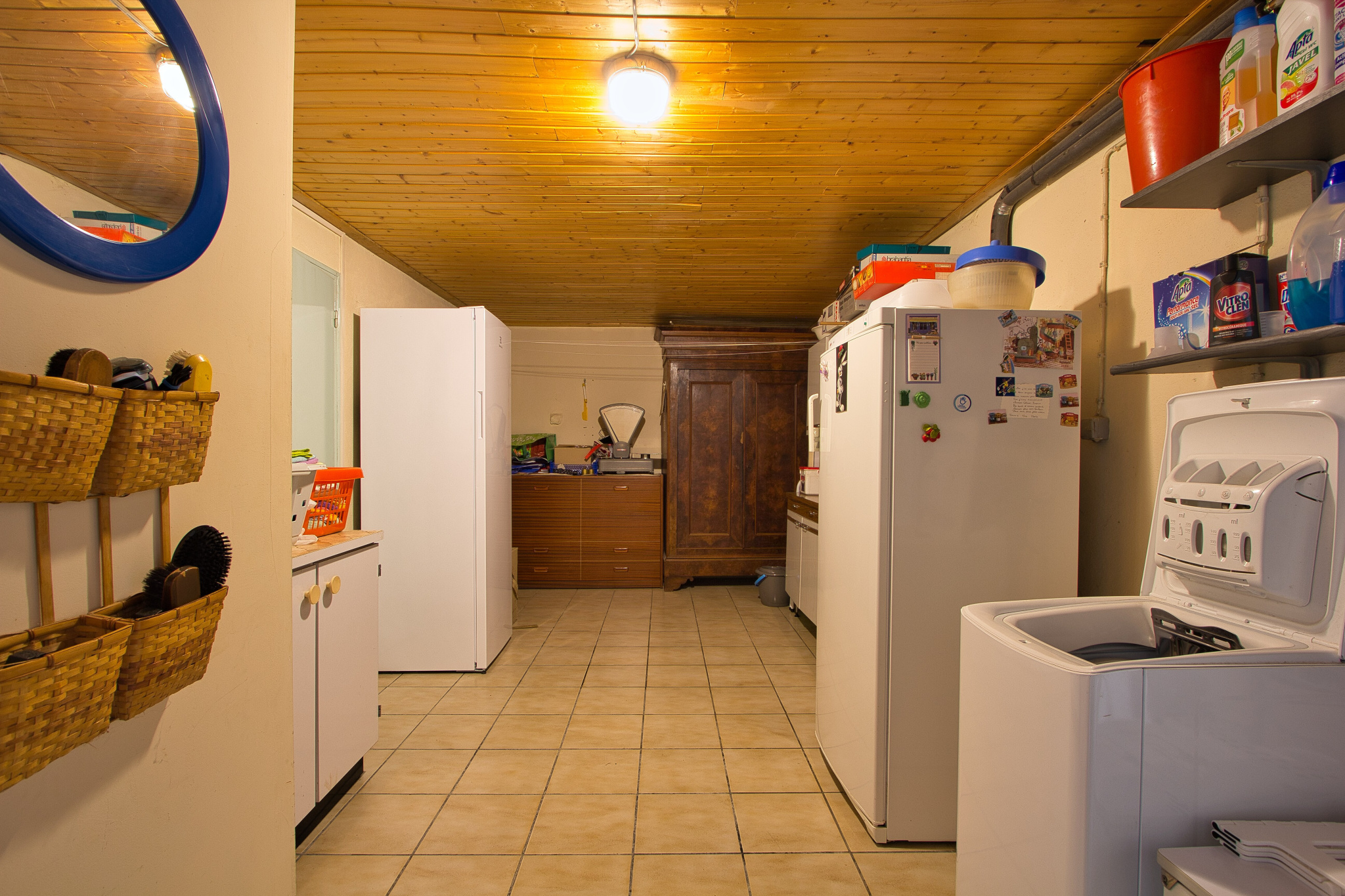 Au Rdc: D'une véranda désservant une cuisine équipée ouverte sur salon / salle à manger, un WC, une douche, une buanderie, un atelier et deux caves.