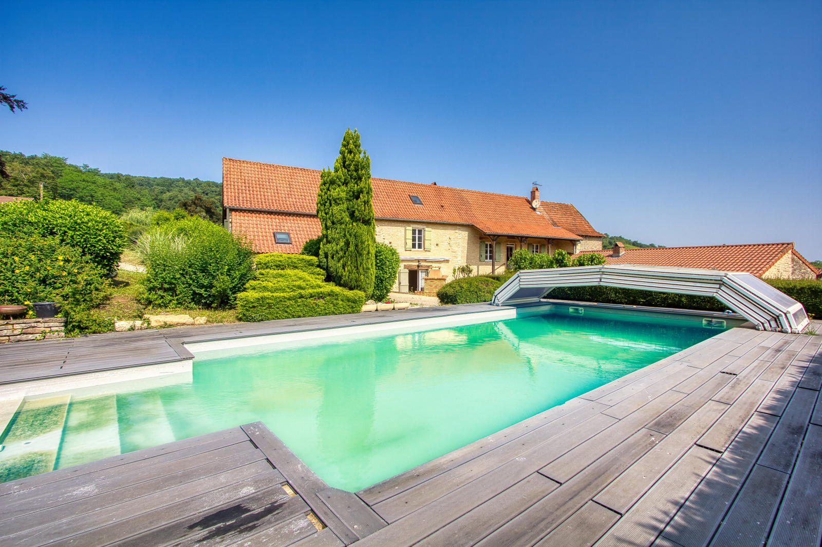 Les +: Maison de caractère située au calme, en excellent état, spacieuse et fonctionnelle, grande piscine avec dôme et pool house, superbe parc, barbecue, puit, assainissement collectif...