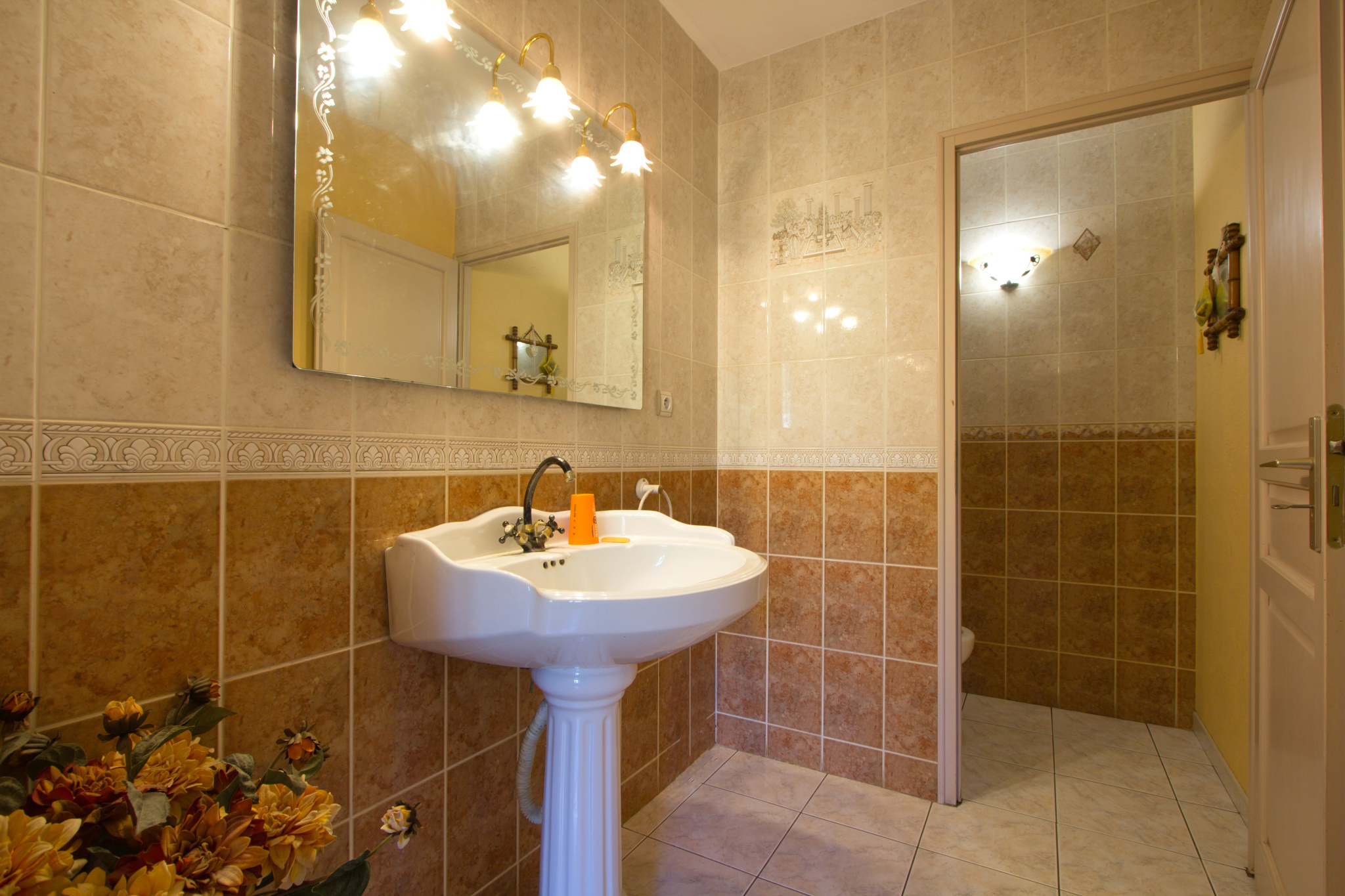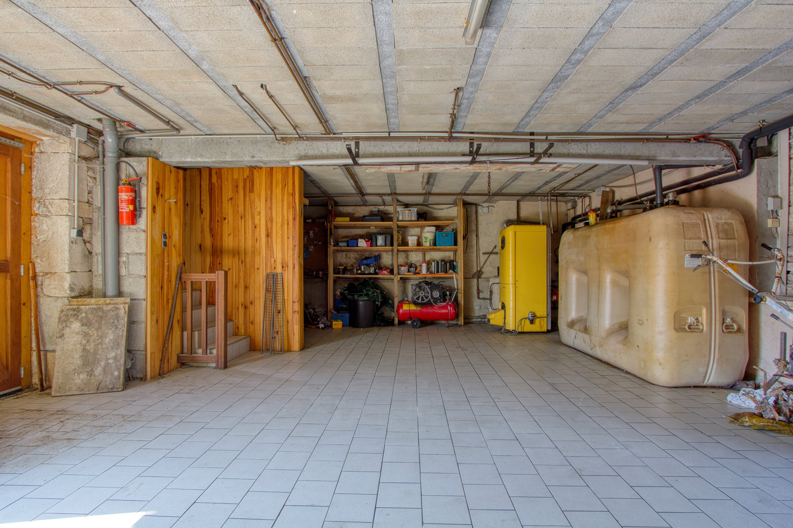 Au rdc, un vaste hall d'entrée, une cuisine d'été, une grande salle de réception chauffée, une chambre avec douche (à terminer), un WC, une buanderie, une cave et un grand garage.