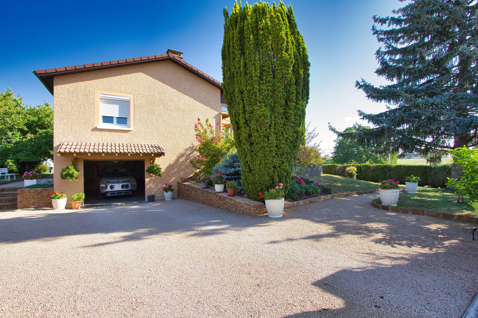 A proximité des entrées d'autoroute A6 et A40, et de Mâcon, à 11 km de la gare TGV, située sur le hameau de Blany, venez découvrir cette maison de 120 m², fonctionnelle et lumineuse, au calme, en excellent état et offrant de très belles prestations, le tout implanté sur un terrain de 1 250 m² arboré et paysagé.