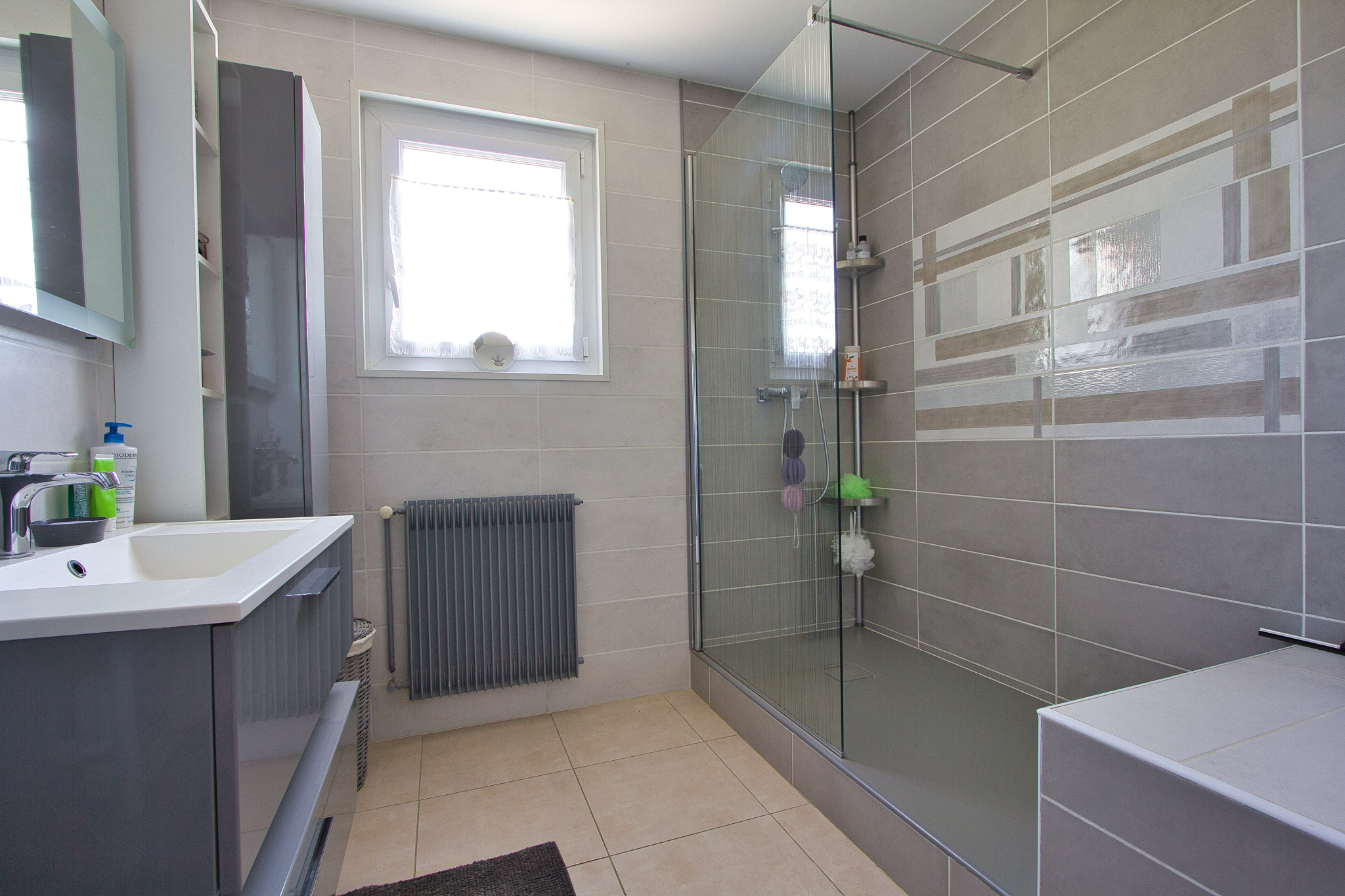 - une belle cuisine toute équipée, un salon - salle à manger, 3 chambres, une salle de douche entièrement refaite à neuf, un WC séparé, une véranda exposée Sud Est ;