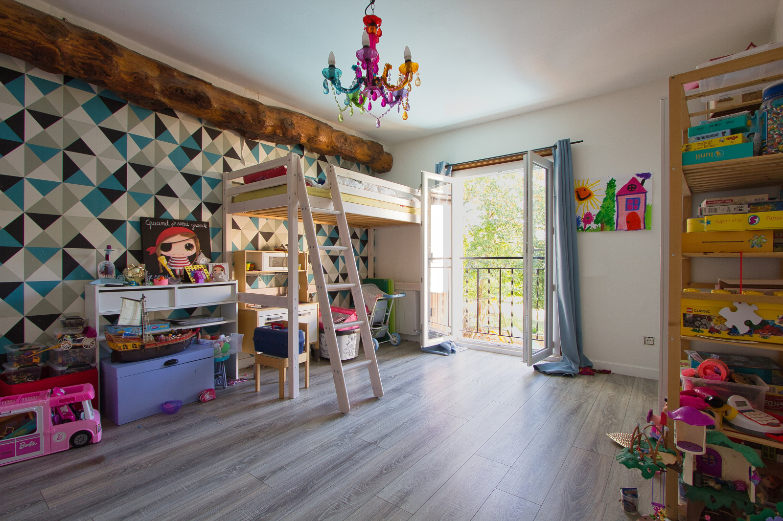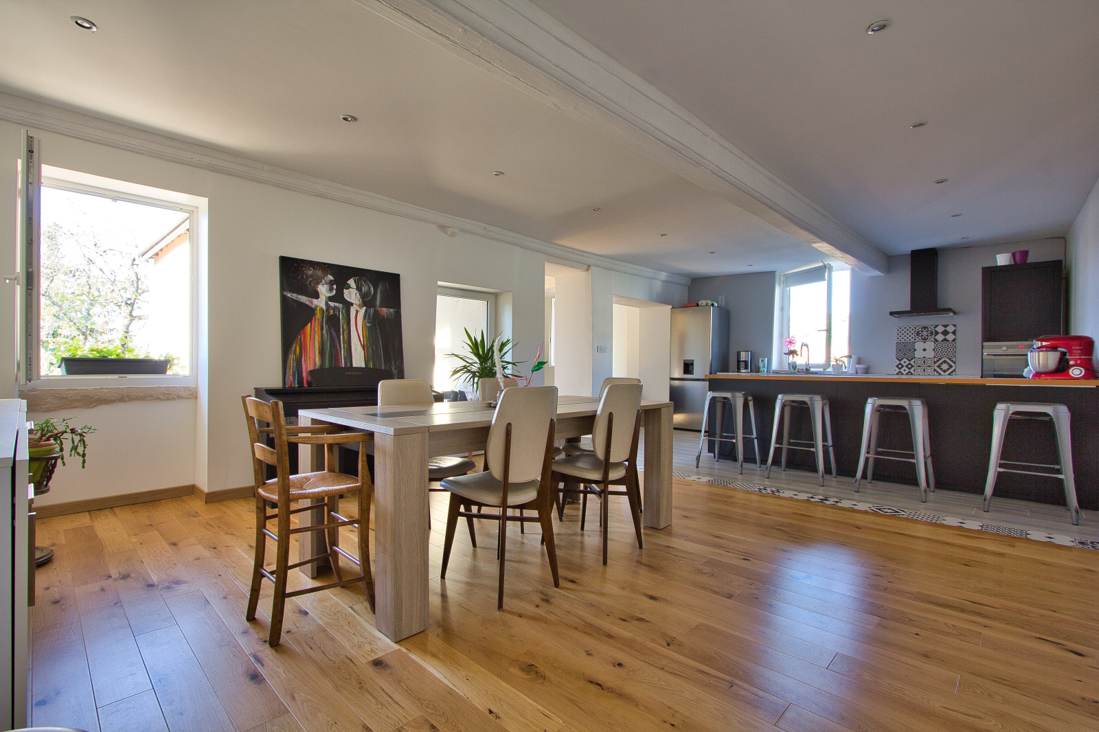 - à l'étage : cuisine équipée ouverte sur salon / salle à manger, 3 chambres, salle de bain et douche, WC séparé ;