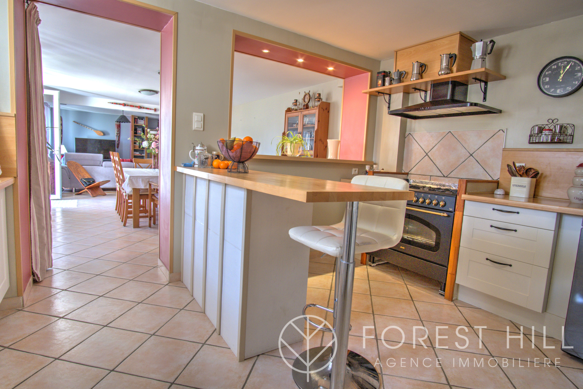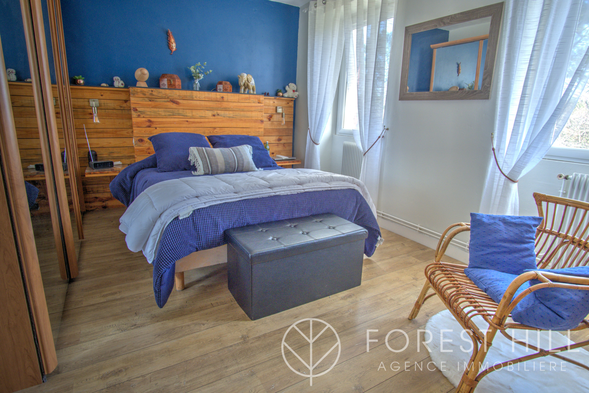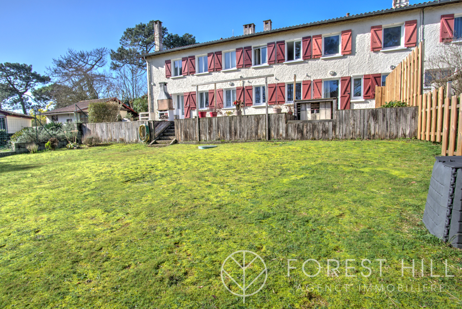 D’une superficie de plus de 120 m², il bénéficie d’un jardin privatif de plus de 400 m², avec un accès direct à la forêt.