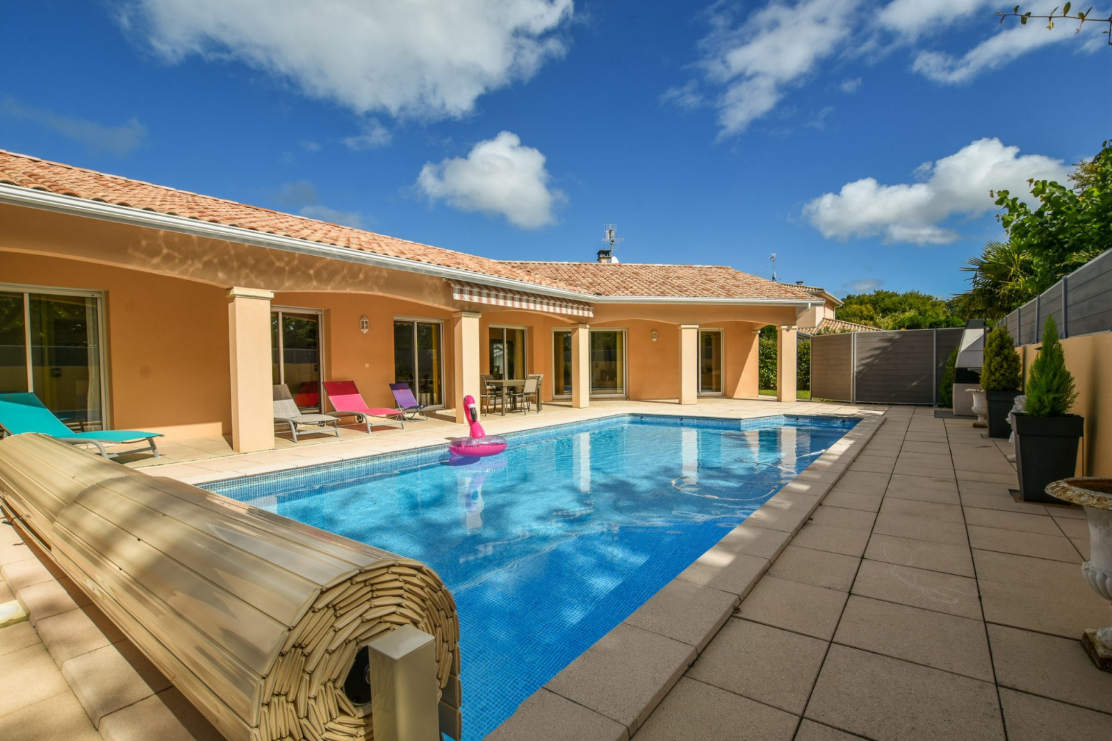 Mandat exclusif à La Teste de Buch dans le quartier très recherché des Bordes, magnifique villa contemporaine de plain-pied avec 4 chambres et studio indépendant édifiée sur une parcelle de terrain de 988 m² avec piscine. Le tout situé au calme sans vis à vis, tout proche des commerces et du bassin. Piscine plein sud, chauffage au sol, portail automatique, abris de jardin, garage avec porte électrique,... Elle se compose d'un hall d'entrée, d'un vaste salon de plus de 60 m² avec cuisine ouverte aménagée et équipée, d'un cellier, d'une suite parentale avec dressing et salle de bain, de trois chambres, d'un wc avec lave-main, d'une vaste buanderie (13 m²). Studio indépendant avec salle d'eau et wc. Une villa de très grande qualité dans un environnement privilégié. D'autres photos, un plan, ainsi qu'un descriptif détaillé et complet du bien sont à votre entière disposition sur simple demande. Groupe DIÉ IMMOBILIER - Matthieu Vanmackelberg - Agent Commercial - 06 61 95 67 59 - matthieu.v@die-immobilier.net