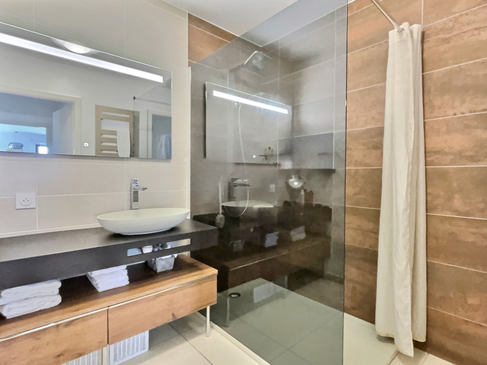 Le coin nuit offre 2 chambres, une salle de douche haut de gamme, toilettes séparées et un cellier avec chaufferie.