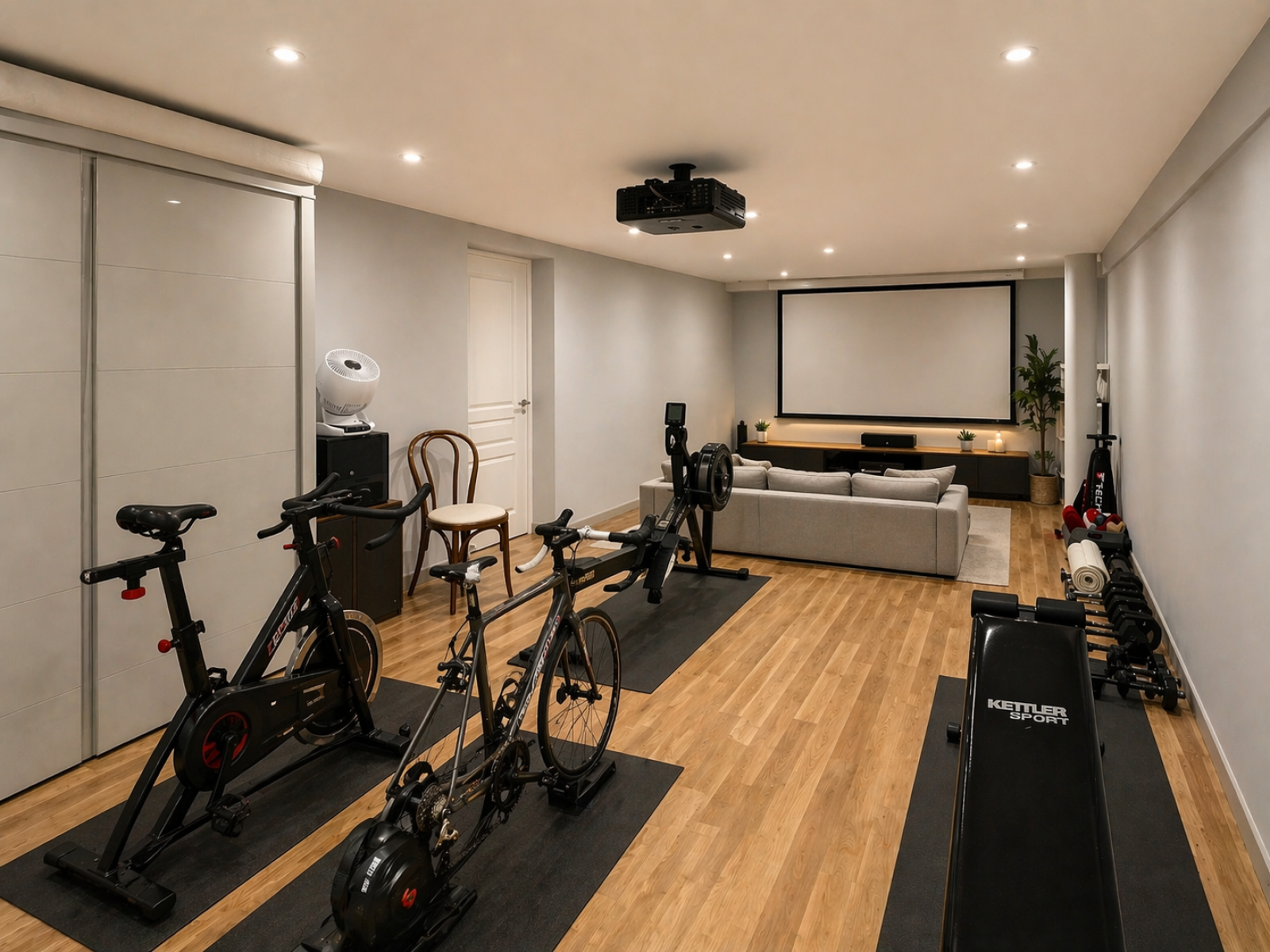 Le sous-sol dévoile des prestations rares : espace bien-être avec sauna et douche, grande pièce polyvalente (cinéma privé, ftness), bureau ou chambre supplémentaire, buanderie, garage etnombreux rangements.