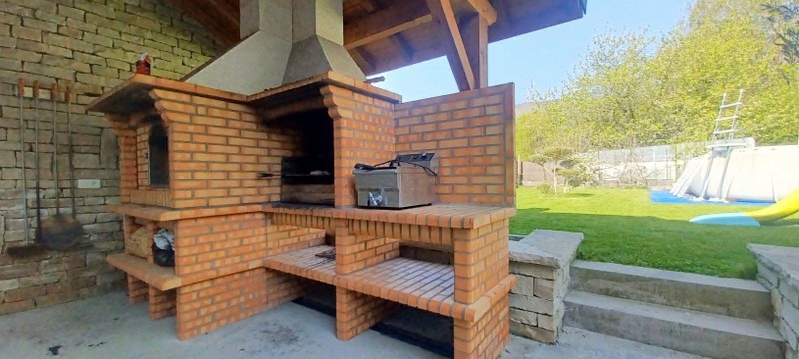 En annexes, la propriété dispose d’un second garage pouvant accueillir deux véhicules, d’un espace extérieur avec barbecue, four à pain et grill, ainsi que de places de stationnement extérieures pour deux voitures.