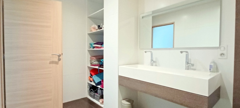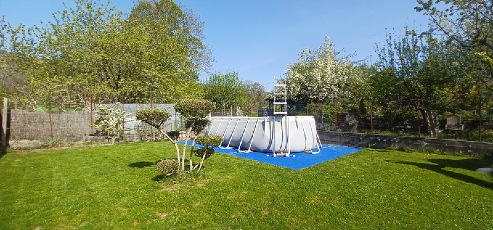 Au rez-de-chaussée, vous trouverez un grand garage d’environ 50 m², une buanderie, une cuisine d’été avec accès direct à la terrasse et au jardin, ainsi qu’une salle de douche avec WC.