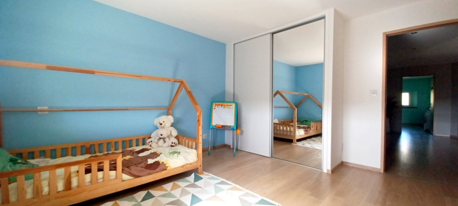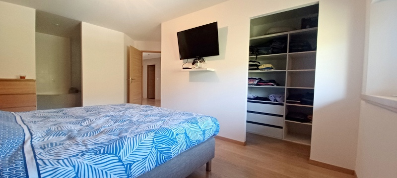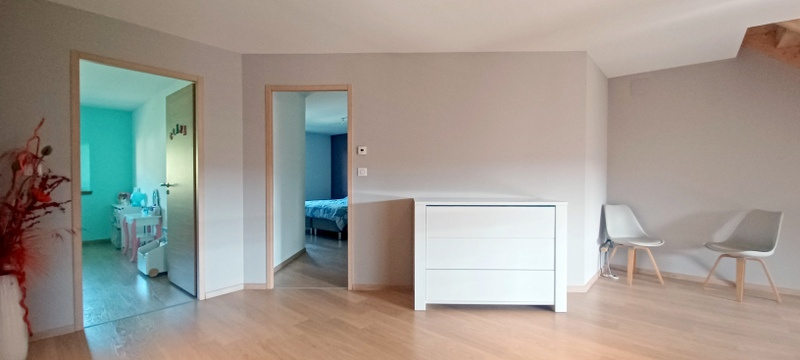 Au deuxième étage, l’espace nuit comprend trois chambres, dont une suite parentale avec dressing et salle de bains, une salle de douche et un WC séparé.