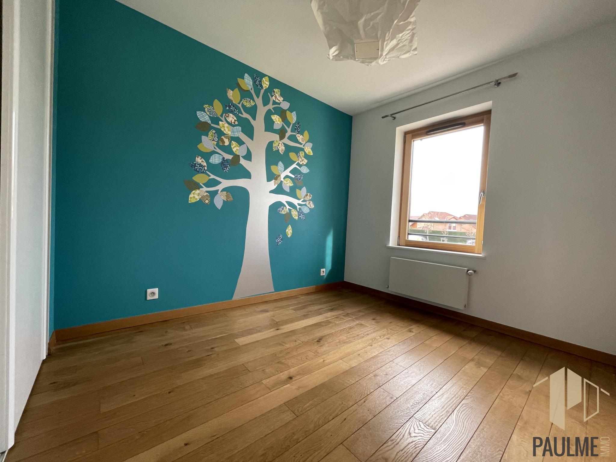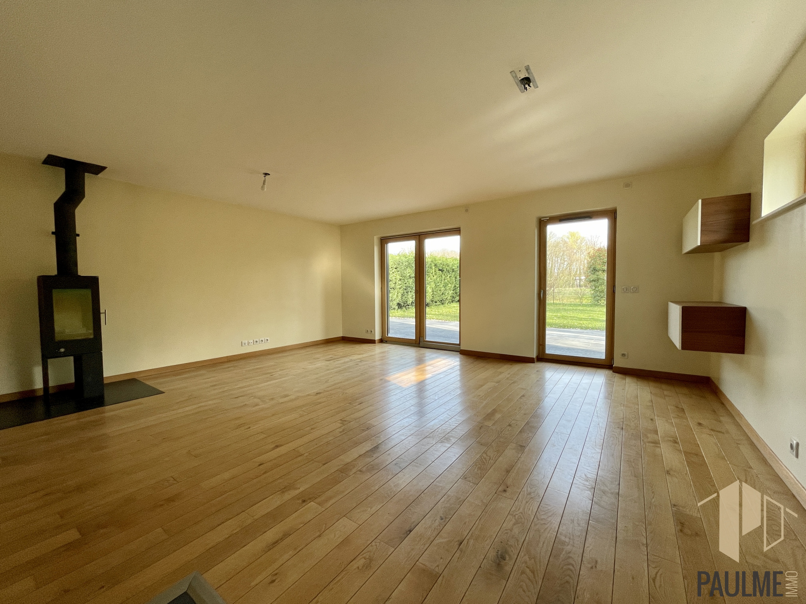 SOUS OFFRE. Très jolie maison individuelle BBC construite en 2012 d'une surface de 128 m² Carrez (173 m² utiles). Elle offre une entrée avec placards intégrés, une cuisine équipée ouverte sur un beau séjour avec poêle à bois, WC visiteurs. A l'étage : une grande chambre de 25m2 avec 2 placards intégrés, une chambre avec placard, une suite parentale avec salle d'eau, balcon et accès à la mezzanine de 52 m2, une salle de bains avec douche et baignoire, WC séparé. En complément, un jardin entièrement clôturé exposé Est-Sud-Ouest avec une jolie terrasse, garage et places de parking. Possibilité 4 chambres !