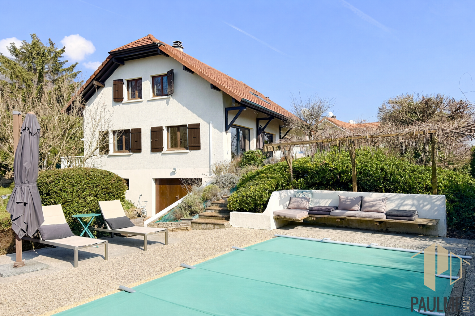 Implantée sur un terrain clos et arboré de plus de 1 300 m², cette propriété offre environ 213 m2 au sol, une superbe luminosité et des prestations idéales pour une famille.