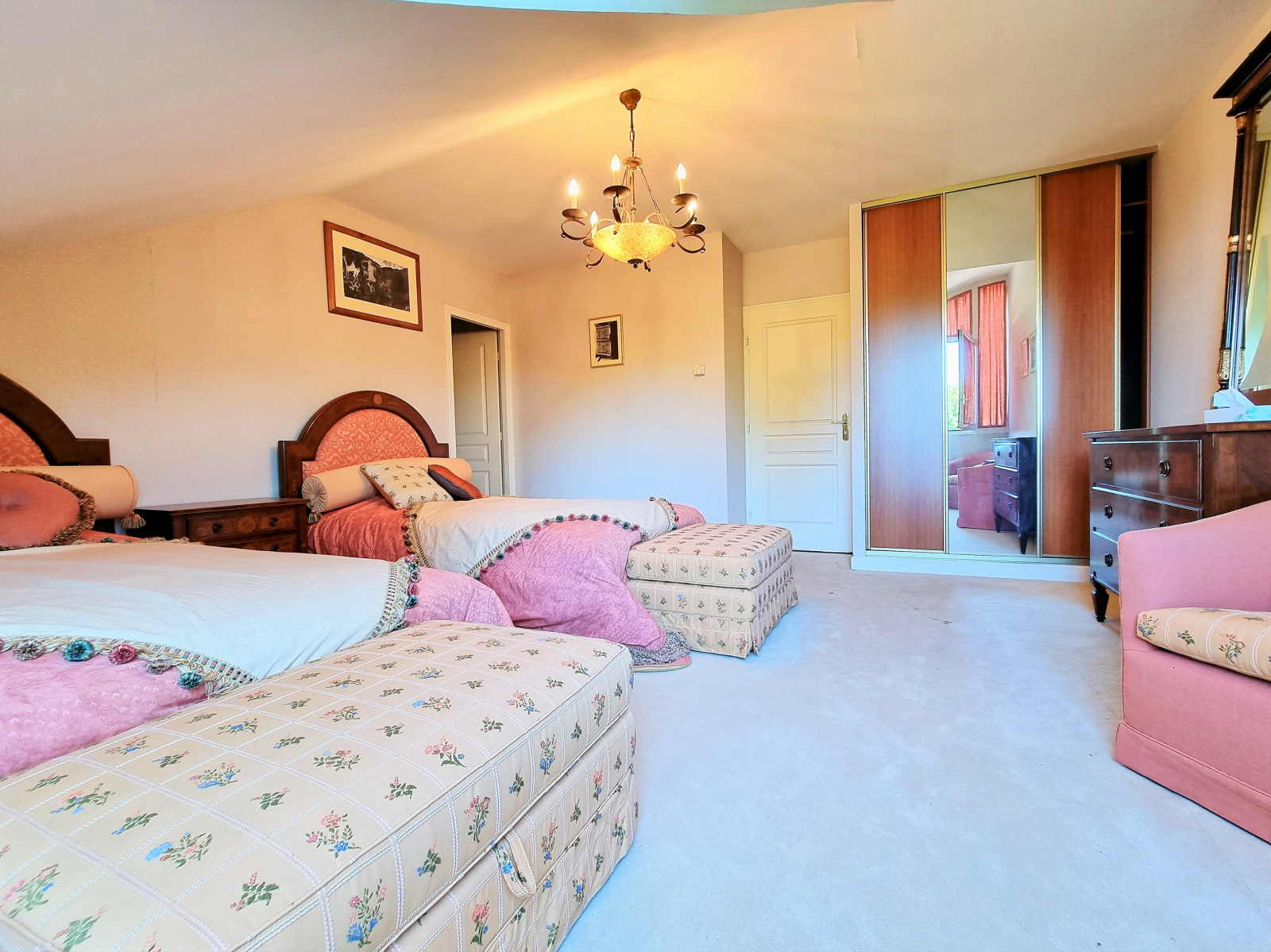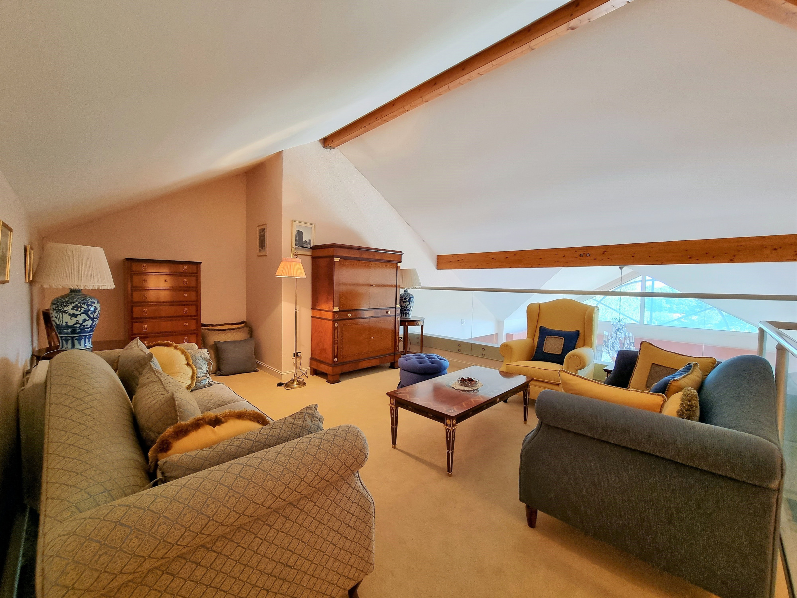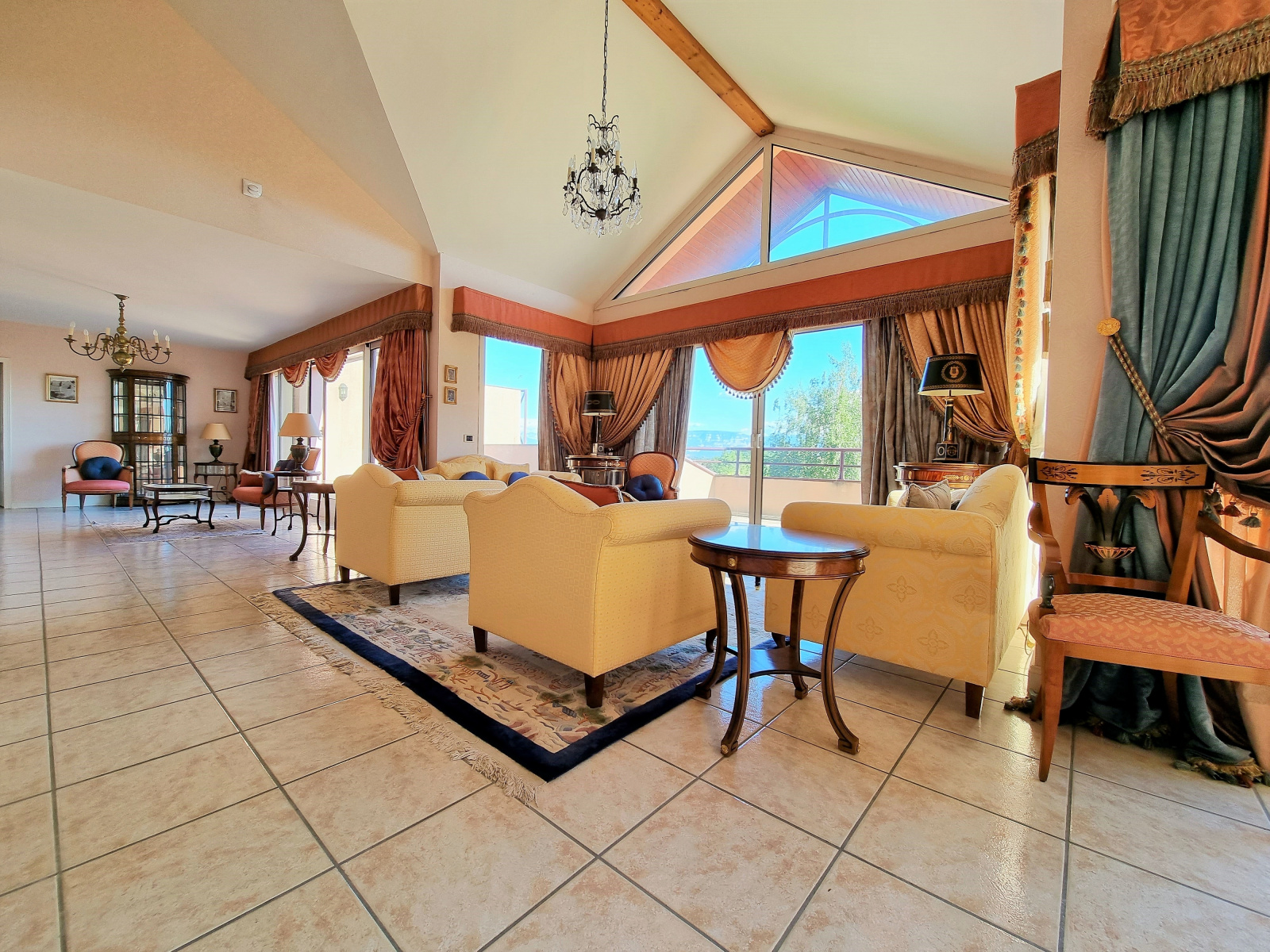 1 entrée / 1er salon de réception de 18 m², 2ème séjour / coin feu d’environ 41 m², 3ème salon en mezzanine de 21,50 m² , 1 spacieuse cuisine indépendante de 18 m², 1 salle à manger de 17 m², 1 suite parentale de 36 m² avec salle de bains, douche, espace dressing et terrasse privée, 4 chambres avec salles de bains ou d’eau / WC privatives dont une pièce réservée aux domestiques pouvant accueillir 4 personnes.