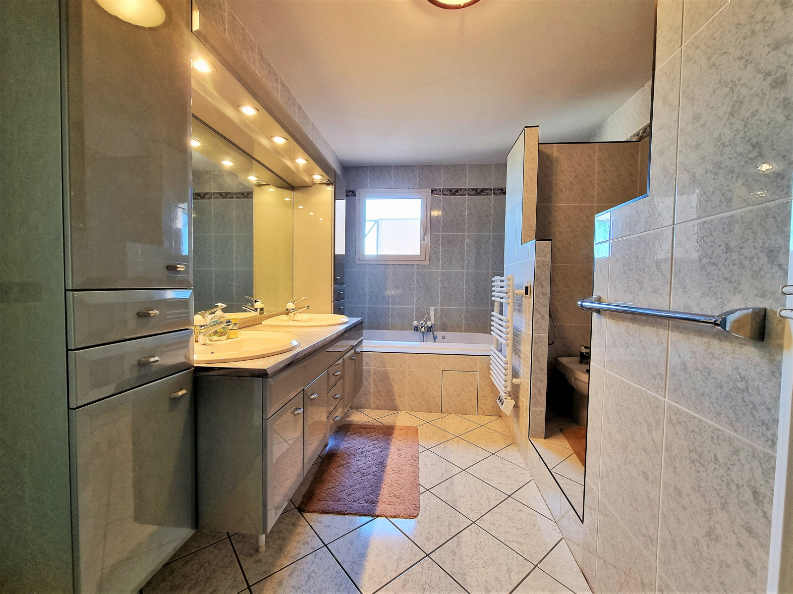 Le chauffage au sol et l’eau chaude sont alimentés électriquement. L’appartement est également équipé de climatisation dans les pièces de vie.