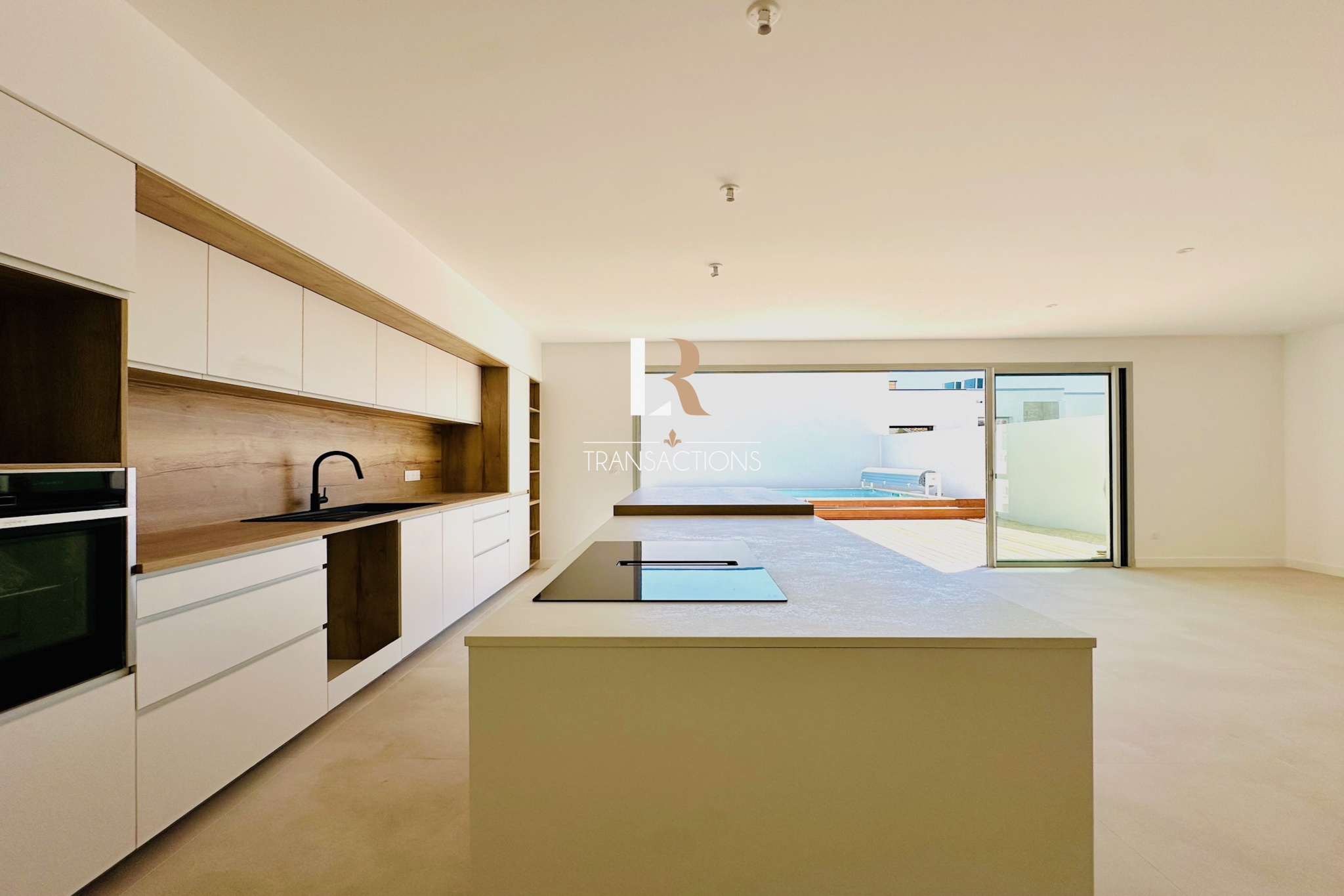 Une spacieuse pièce de vie (Env 80m²) avec une belle cuisine entièrement équipée et son îlot centrale s’ouvre sur l’extérieur par une très grande baie vitrée de plus de 6m. Un espace buanderie, un wc indépendant et un grand garage complète le rez-de-chaussée.