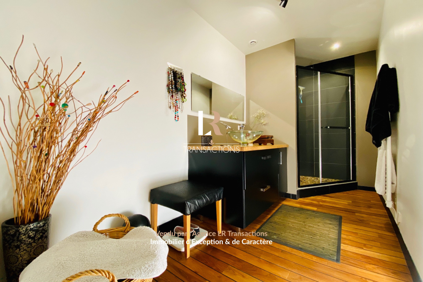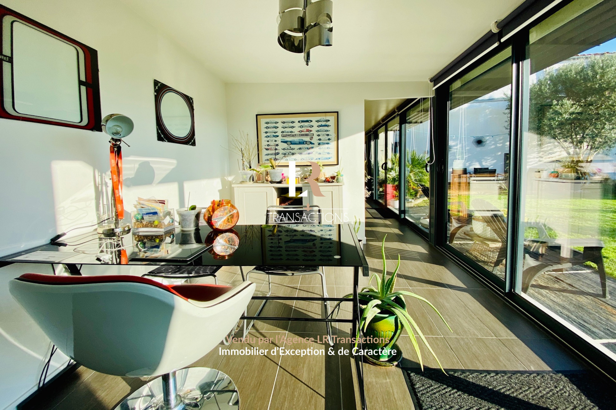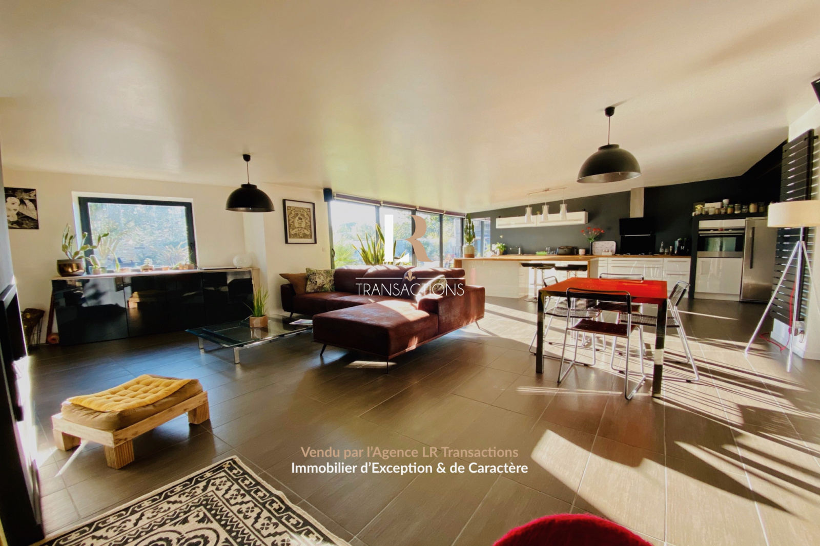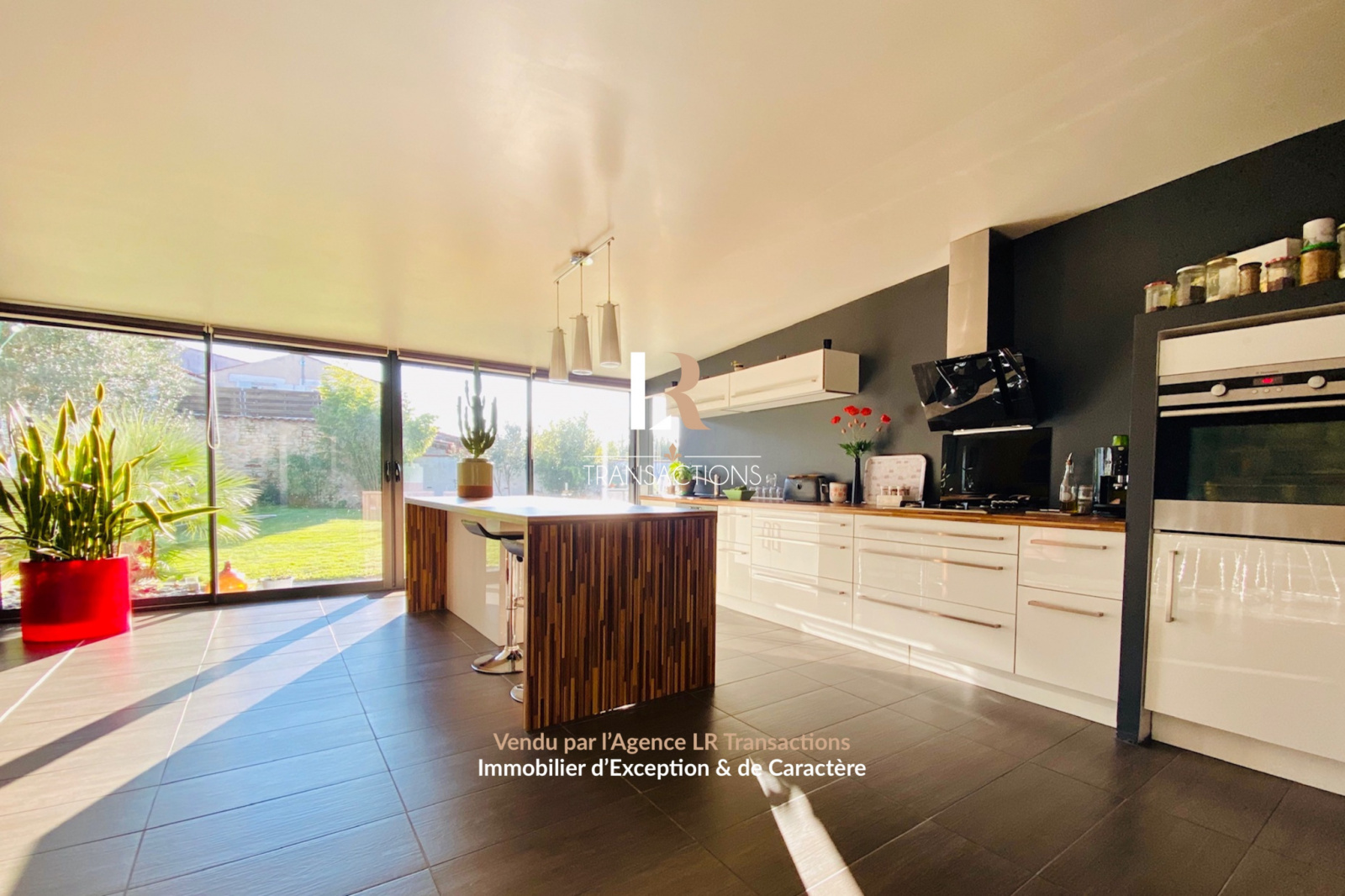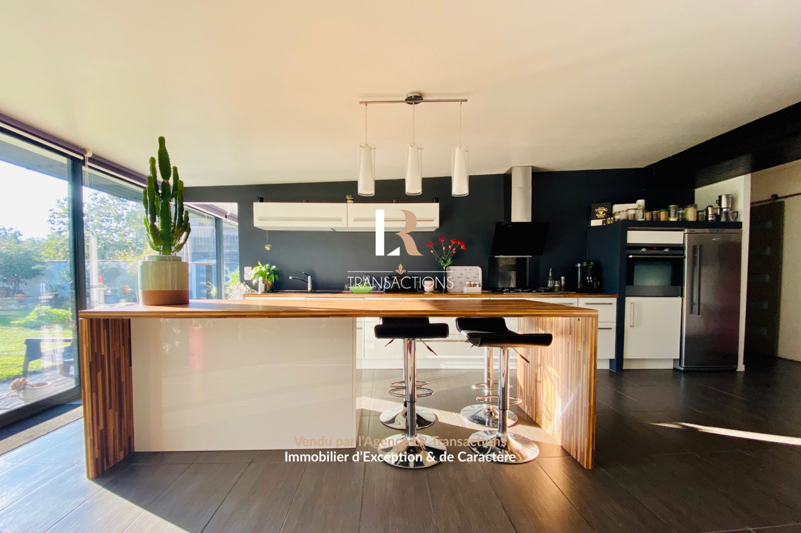 Cette dernière est ouverte sur une belle pièce de vie exposée SUD composée d'une cuisine avec ilot central ainsi qu'un chaleureux espace salon avec cheminée. Ce généreux séjour s'ouvre par de grande baies vitrées et vous invitent à profiter toute l'année du superbe jardin sans vis-à -vis (piscinable). Un espace bureau tout aussi lumineux communique directement avec la pièce de vie.