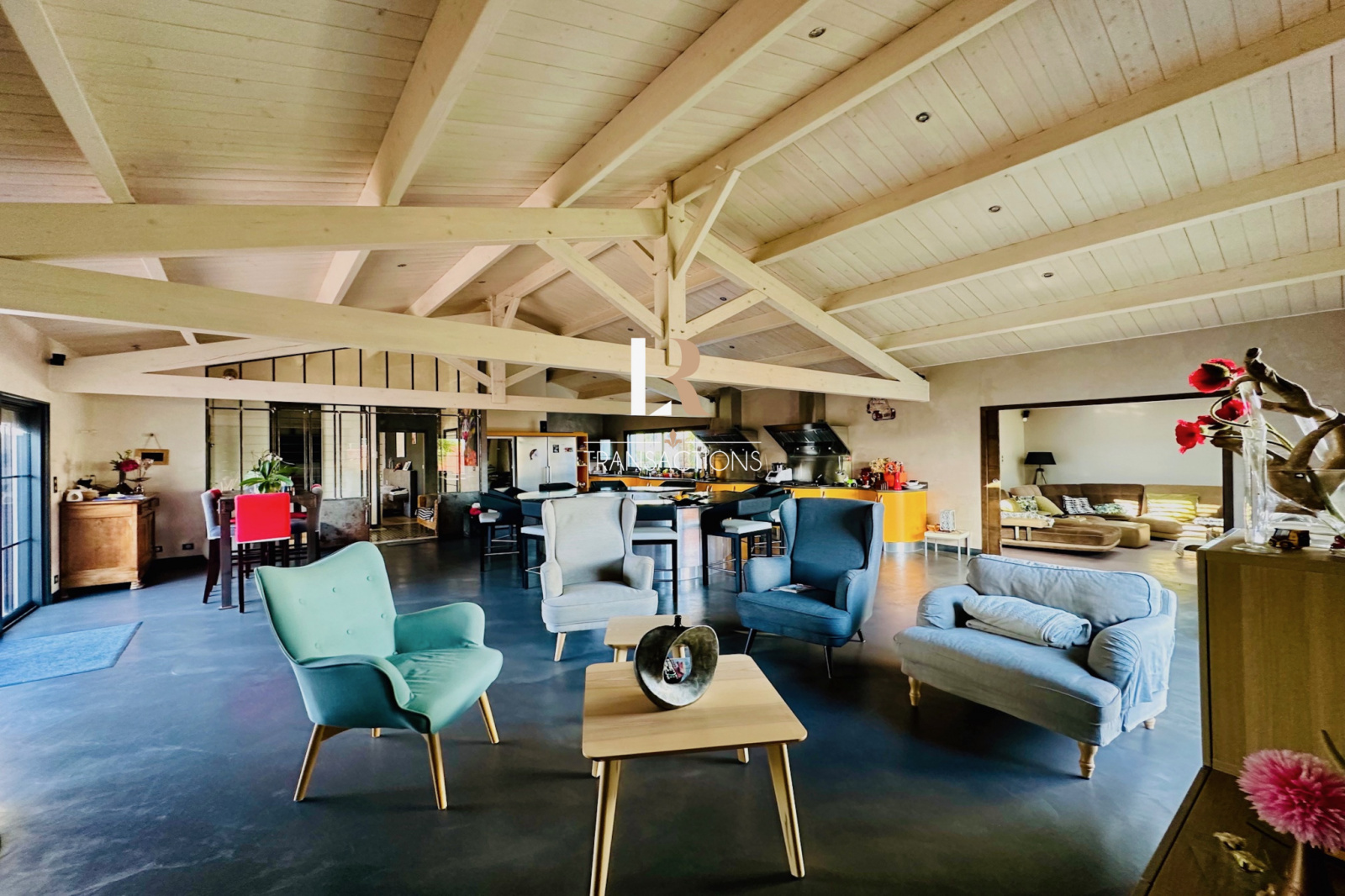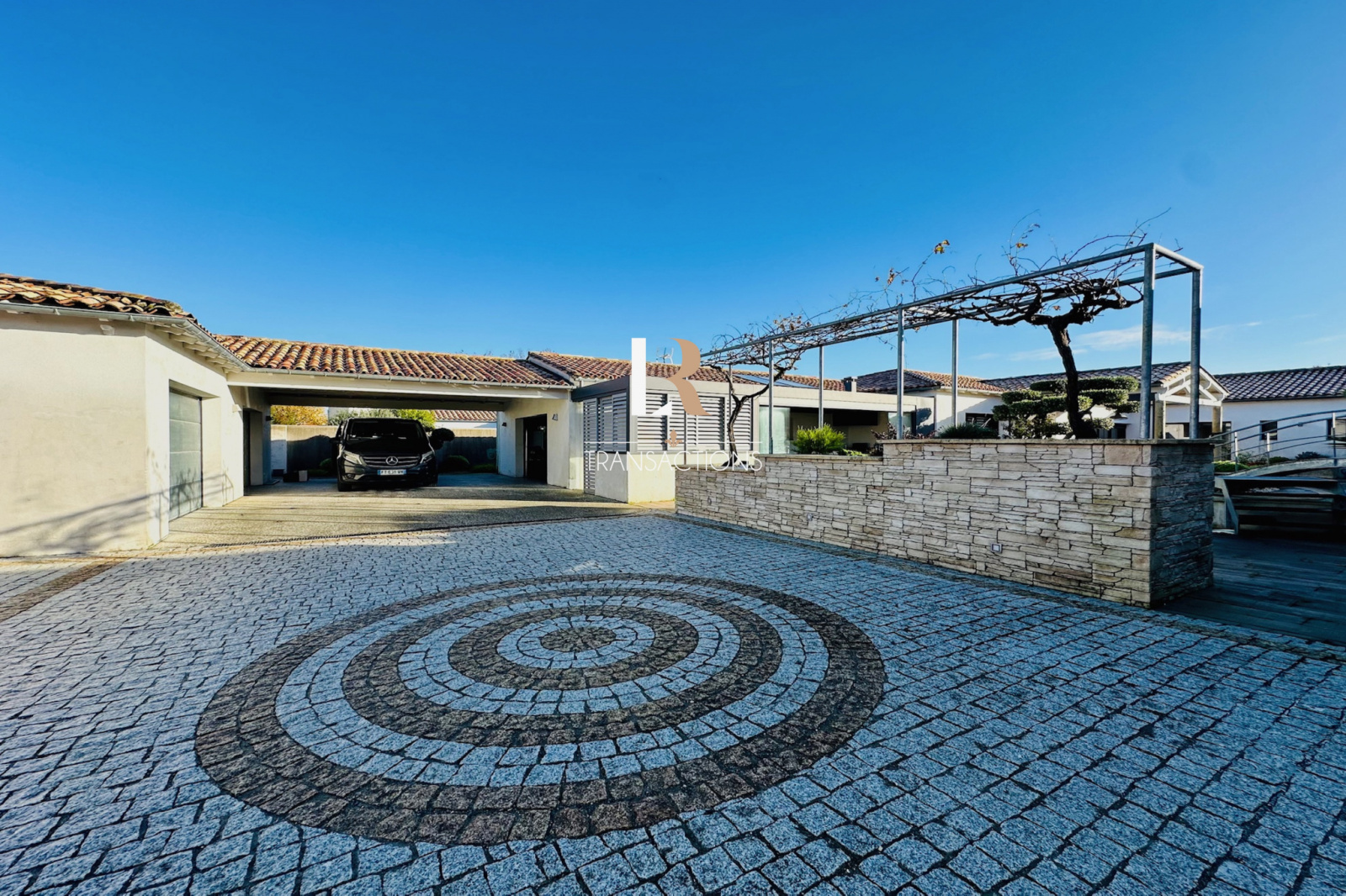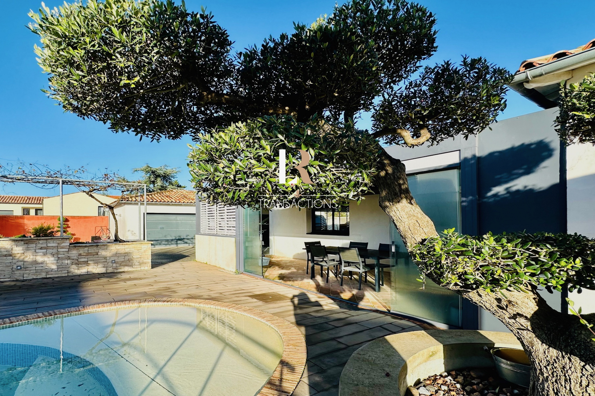 Au calme, dans une impasse, vous accédez par un portail permettant de stationner de multiples véhicules grâce à sa cour d'accueil, son porche et ses trois garages (chauffés avec portes automatiques). Une belle entrée avec placard s'ouvre sur une spacieuse pièce de vie de plus de 90m2 par une élégante baie atelier sur mesure. Cette pièce de vie profite d'un plafond cathédrale et d'une triple exposition, cette dernière s'ouvre sur les extérieurs par une baie à galange. Vous trouverez également une spacieuse arrière cuisine buanderie attenante à la cuisine entièrement équipée avec de l'életroménager (plaques à induction, plancha, friteuse, ice maker, hottes roblin...). Dans la continuité de la pièce de vie, un salon TV avec jacuzzi et sa jolie vue sur un patio paysagé et sa cascade, sera parfait pour vos moments de détente.