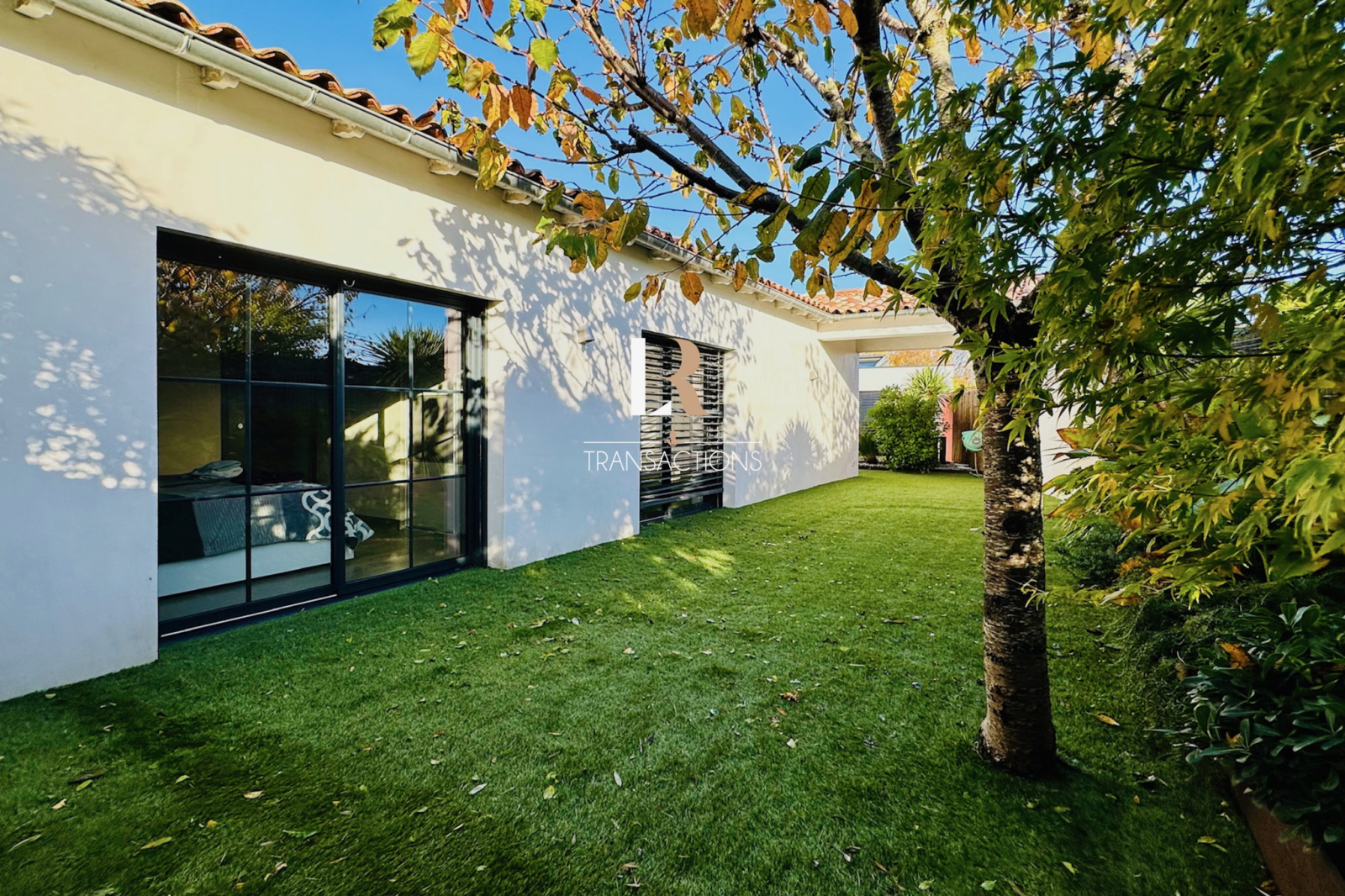 En plein bourg de Lagord, à deux pas des commerces, de l'école et des transports, spacieuse maison entièrement de plain pied avec triple garage, multiples stationnements sur une parcelle de 1100m2 exposée plein Sud.