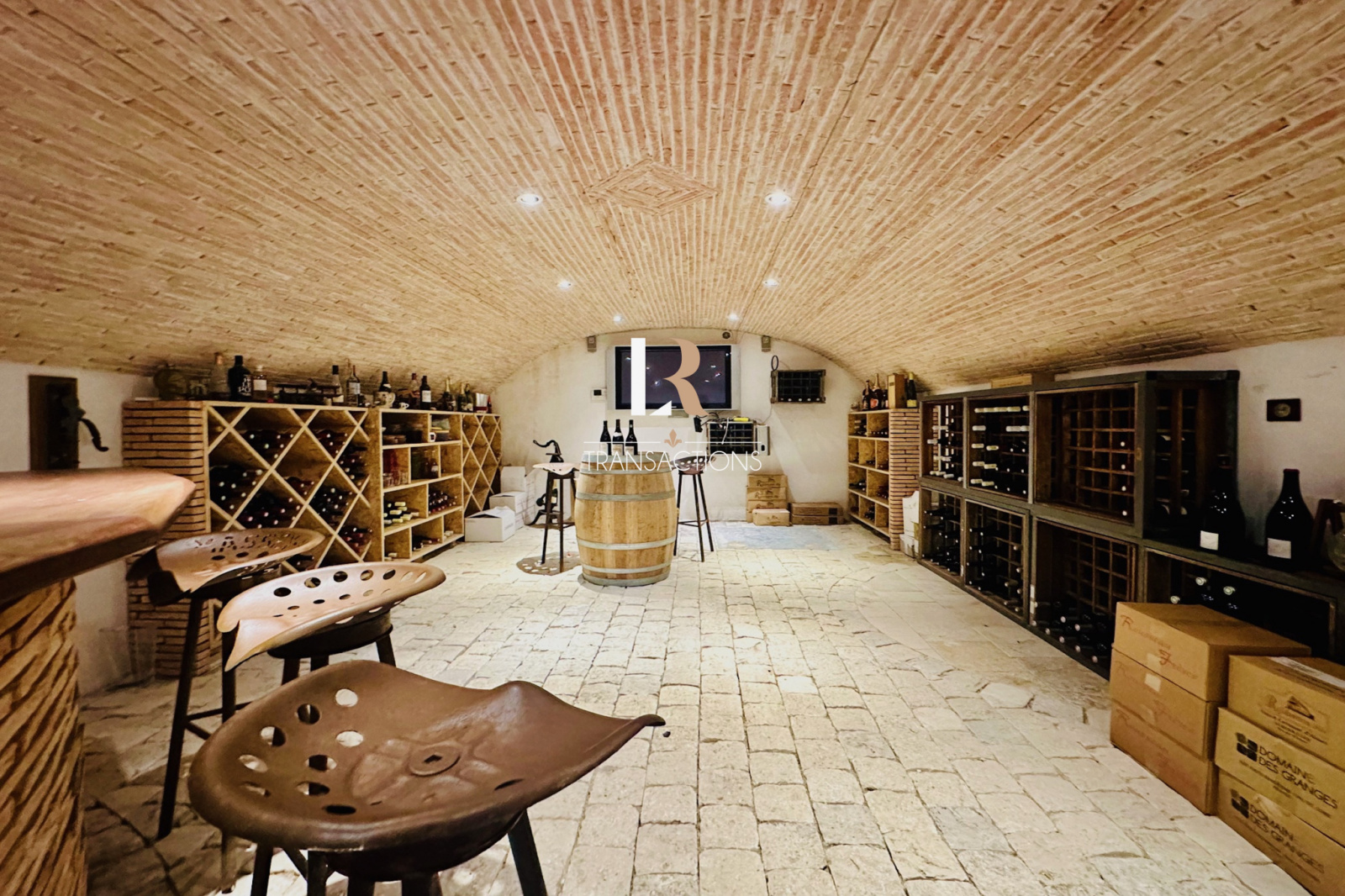 Pour les amateurs de vin, une magnifique cave voutée de plus de 40m2 avec son bar, accueillera votre collection de bouteilles.