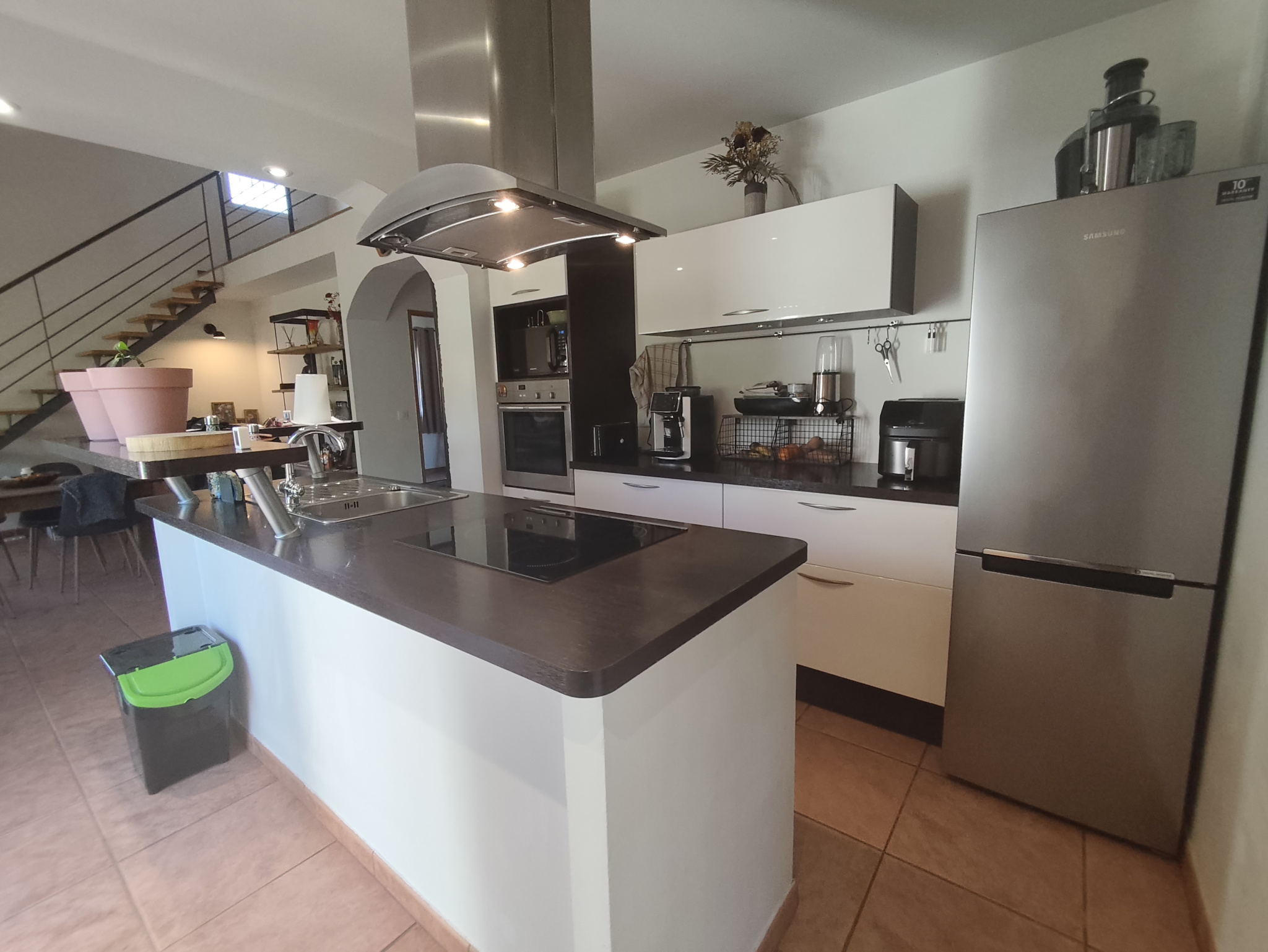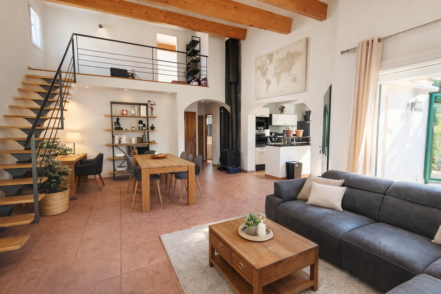 - Espace de vie contemporain d’environ 55 m² avec cuisine équipée ouverte