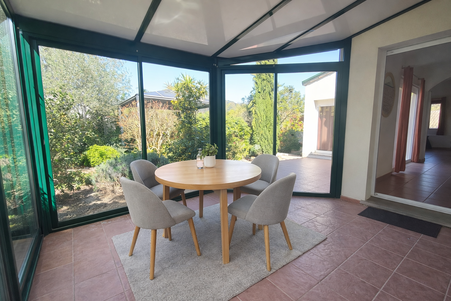 lumineux grâce à de larges baies vitrées équipé d’un chaleureux poêle à bois - Véranda attenante à la cuisine, parfaite pour un coin repas convivial