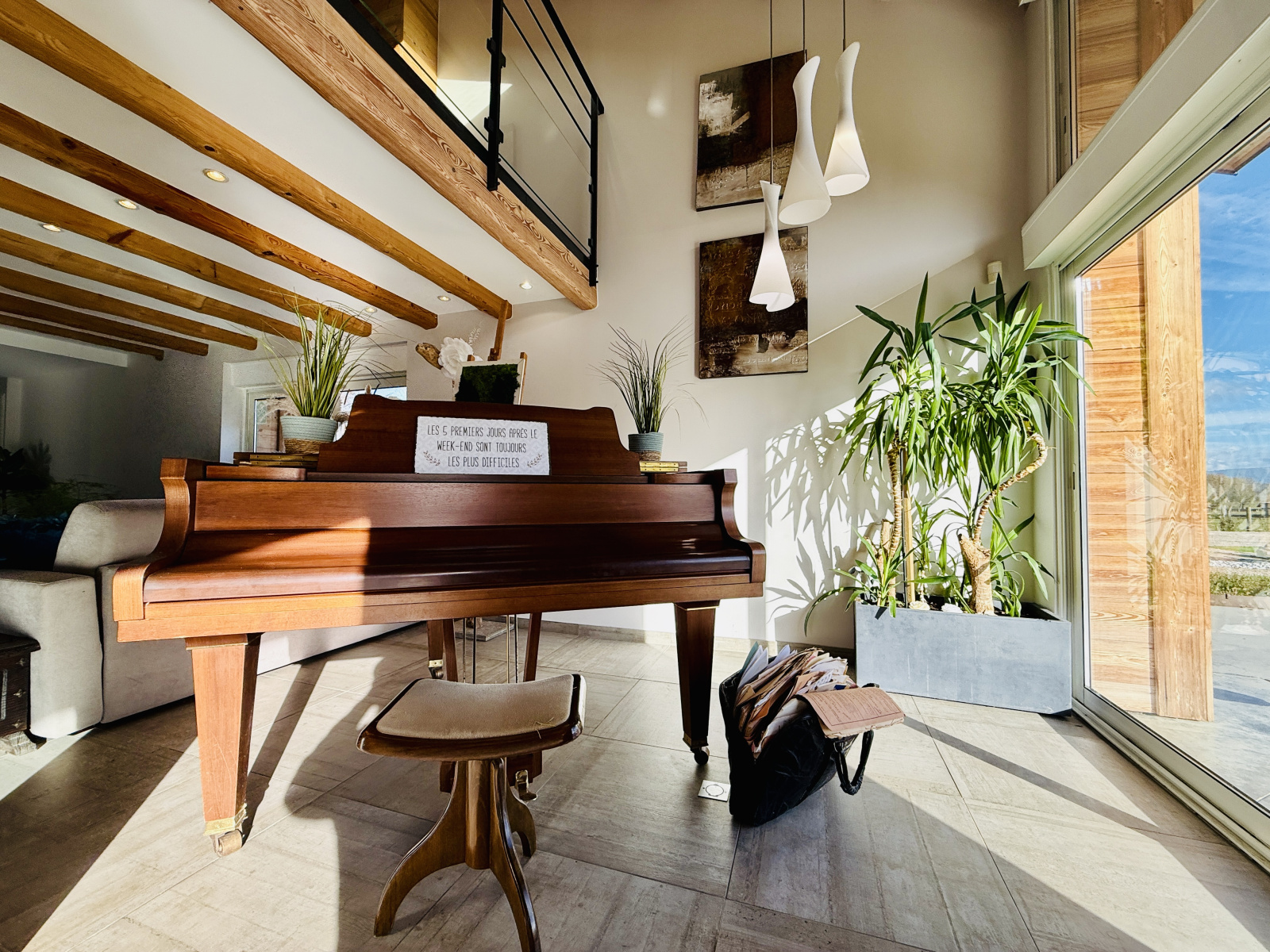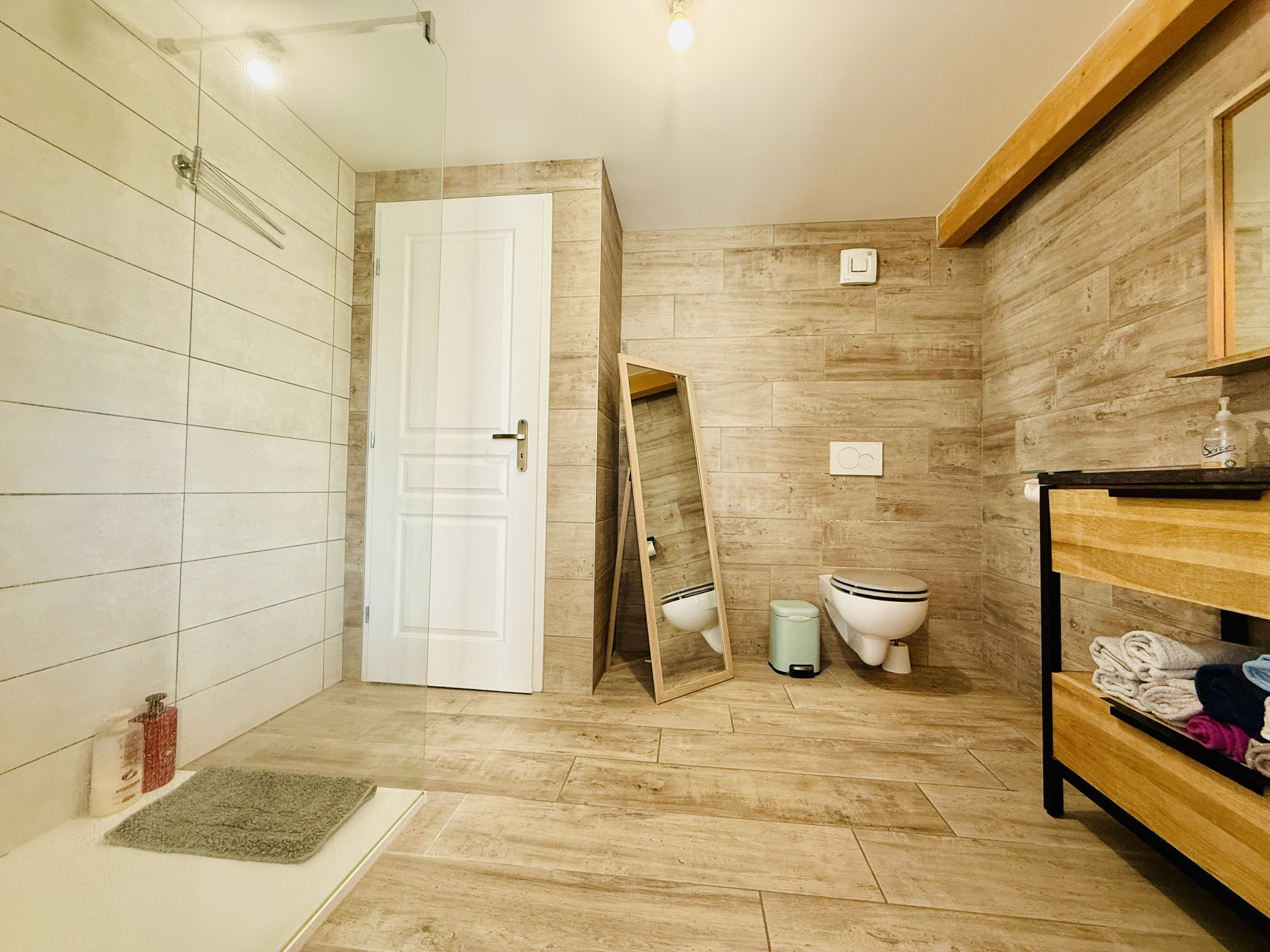 A l'étage, mezzanine ouverte sur le séjour pour un coin salon/TV/lecture cocooning, trois belles chambres avec placards, une salle de bains avec douche, baignoire et toilettes.