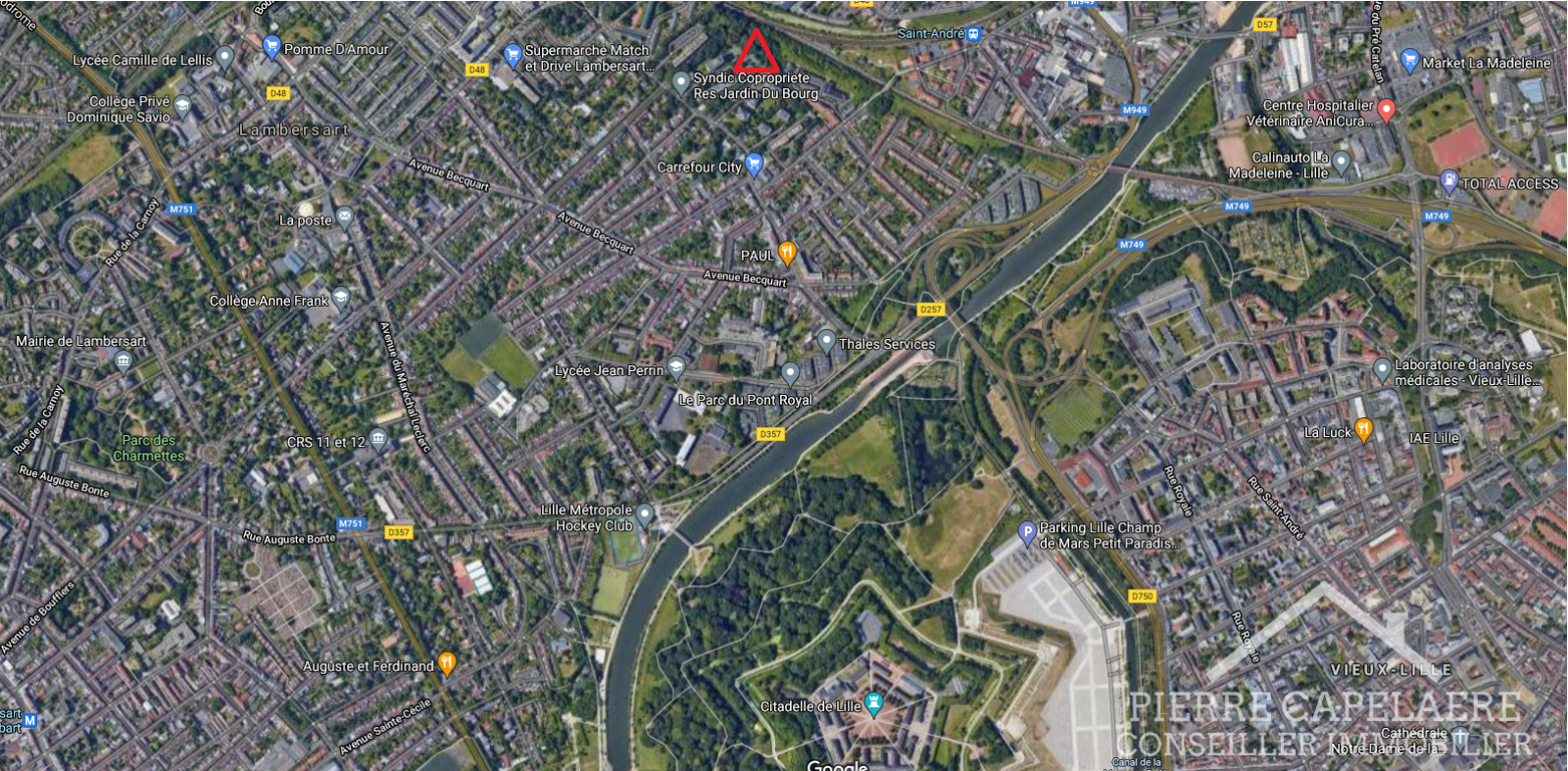 La place est située dans la résidence sécurisée Jardin du Bourg à Lambersart (rue Roger Vergin/rue de Lille).