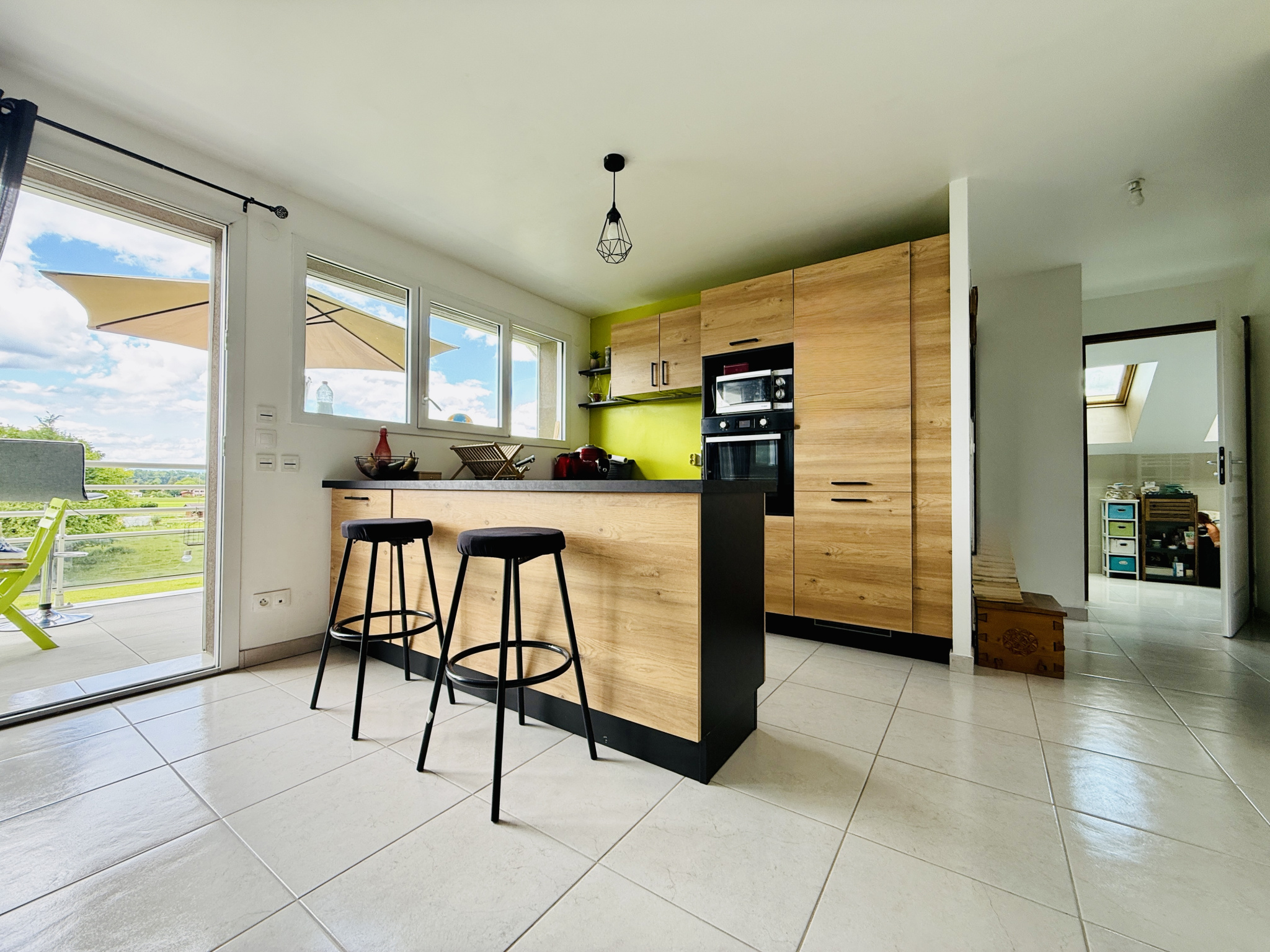 Bien agencé, il est composé de deux chambres, d'une cuisine entièrement équipée ouverte sur un salon/séjour, prolongé par une magnifique terrasse de 24m2, exposée Ouest, sans vis à vis, avec vue dégagée sur les champs environnants. Une salle de bains et des toilettes indépendants complètent l'habitation. Chauffage au sol par Géothermie, syndic professionnel local.